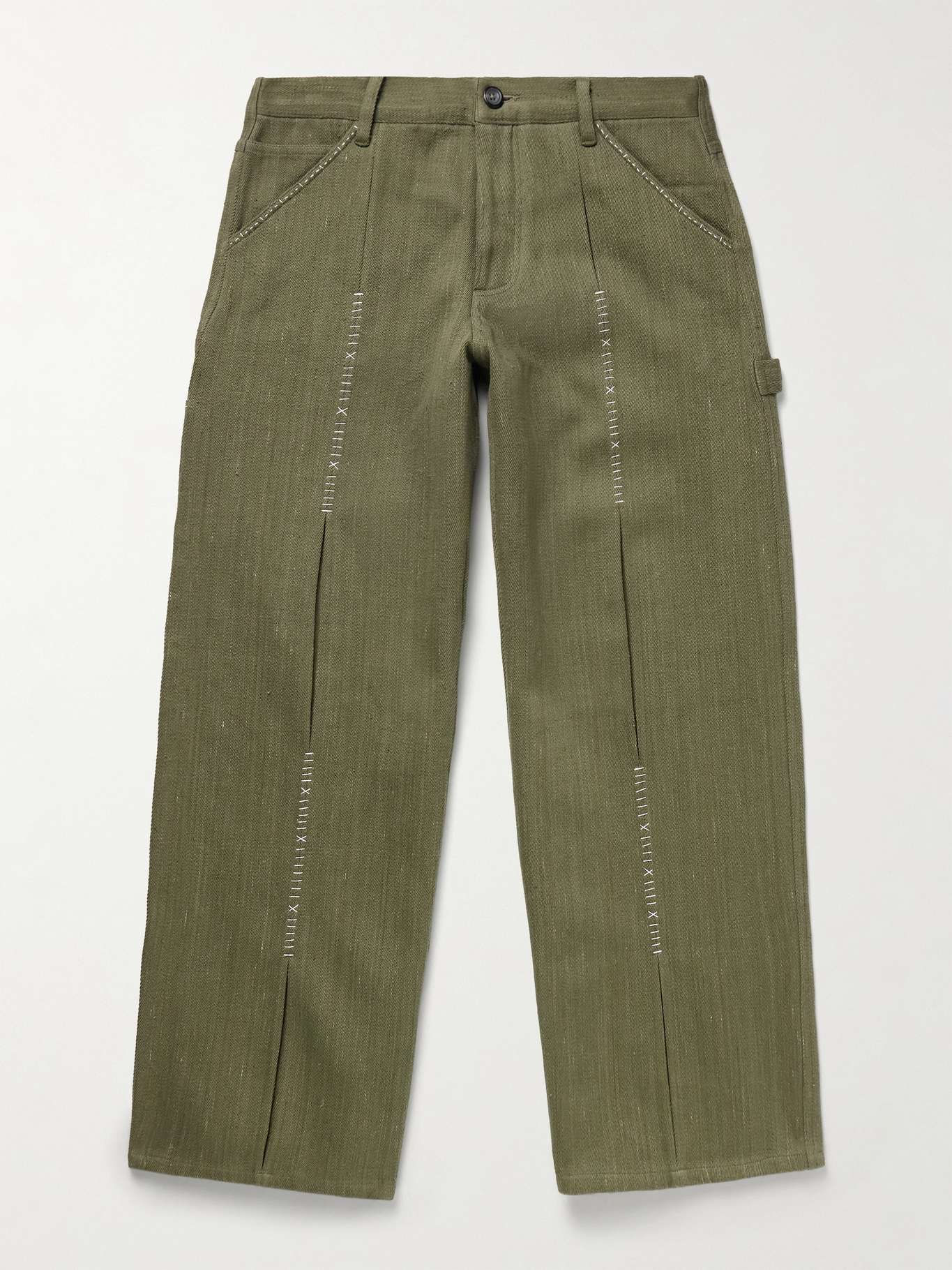KARTIK RESEARCH Shaant Wide-Leg Pleated Embroidered Cotton-Twill Trousers