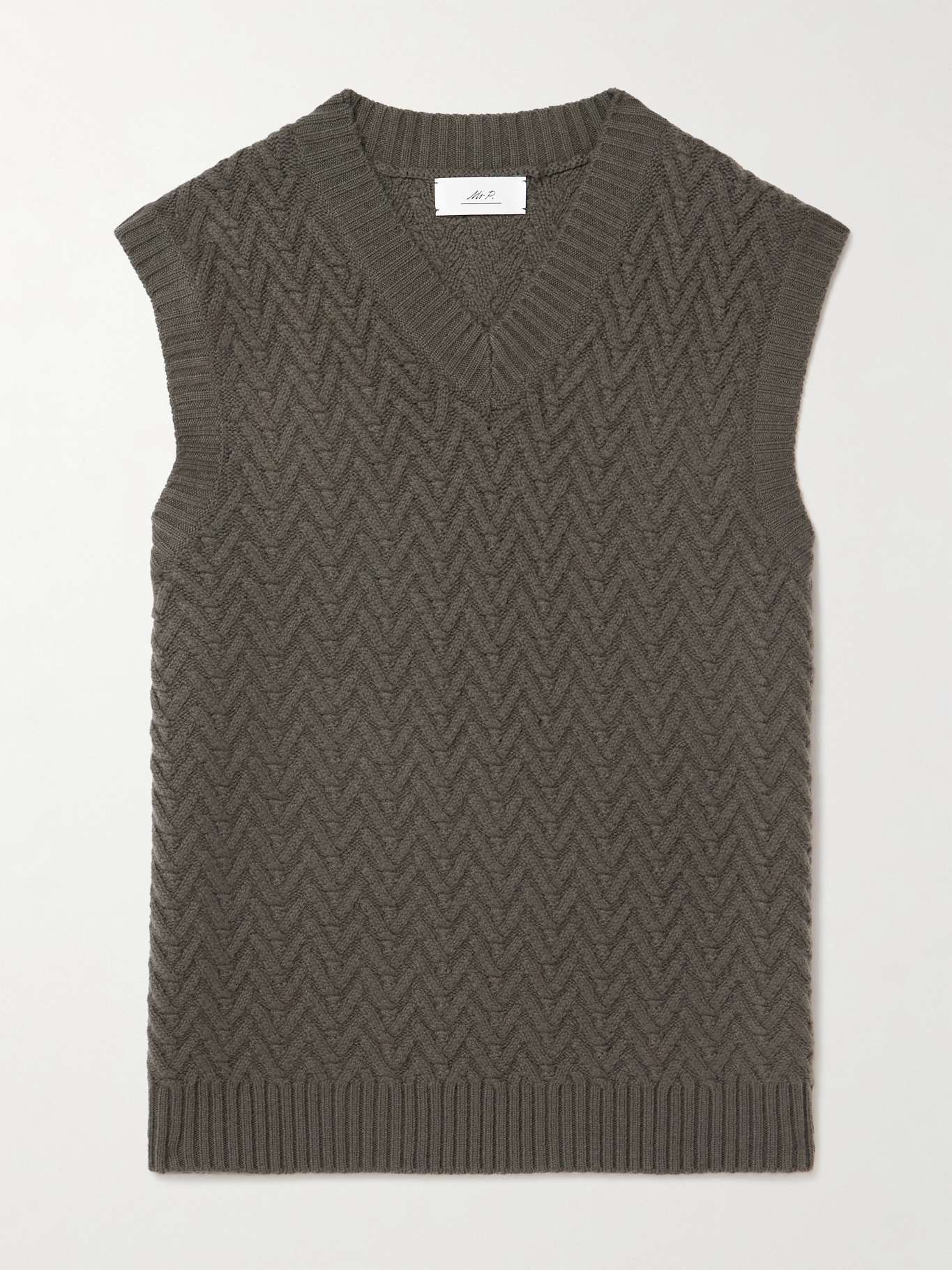 DESIGNED BY MR PORTER. Mr P.'s sweater vest will add visual interest to your outfit. It's knitted from a sumptuous blend of wool and cashmere in a textural chevron stitch. Layer it over a tailored shirt or a tee for a more casual look.