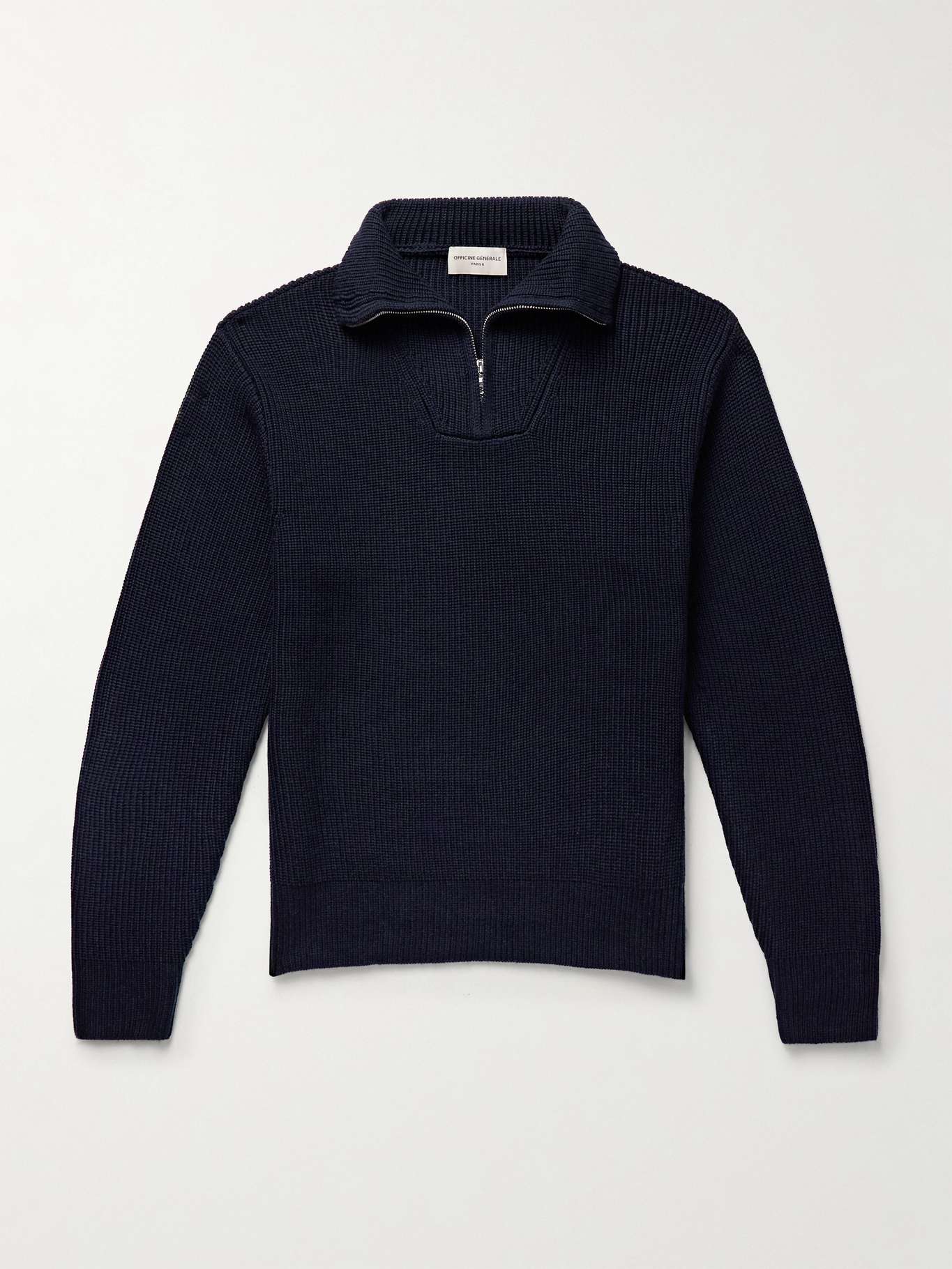 Officine Générale's 'Tarek' sweater features a half-zip construction for easy layering. It's rib-knitted from weighted merino wool and meant to fit slightly loose.