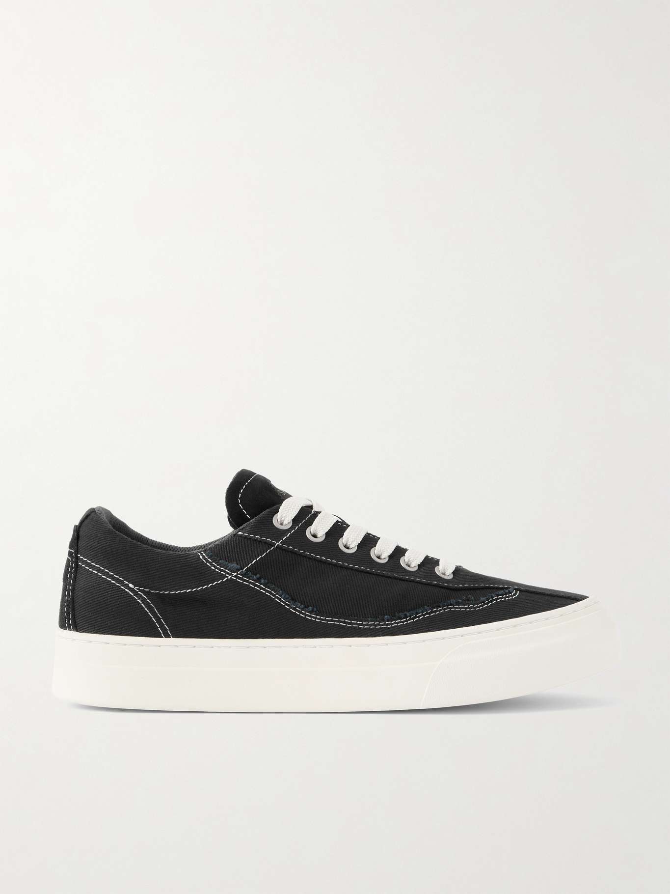 Omni's 'Dellow' sneakers are modelled after old-school styles from London's sports clubs. Made from distressed drill, this leather-trimmed pair features wavy, topstitched panels, high-wall foxing and vulcanised rubber soles.