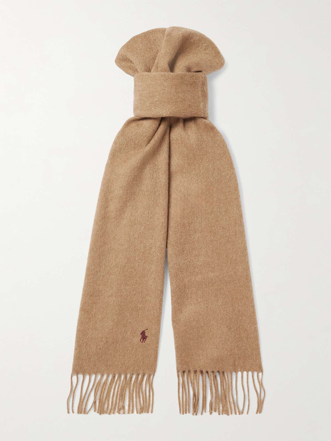 Polo Ralph Lauren's scarf is made from pure cashmere that's lightly brushed for softness. It's embroidered with a signature emblem and finished with classic fringing.