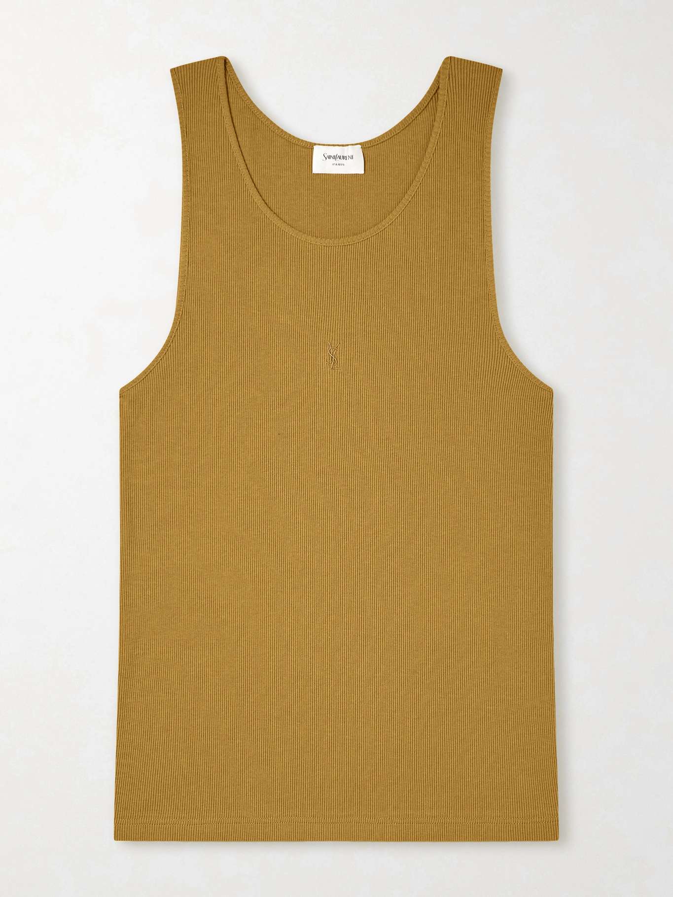 SAINT LAURENT Logo-Embroidered Ribbed Cotton Tank Top