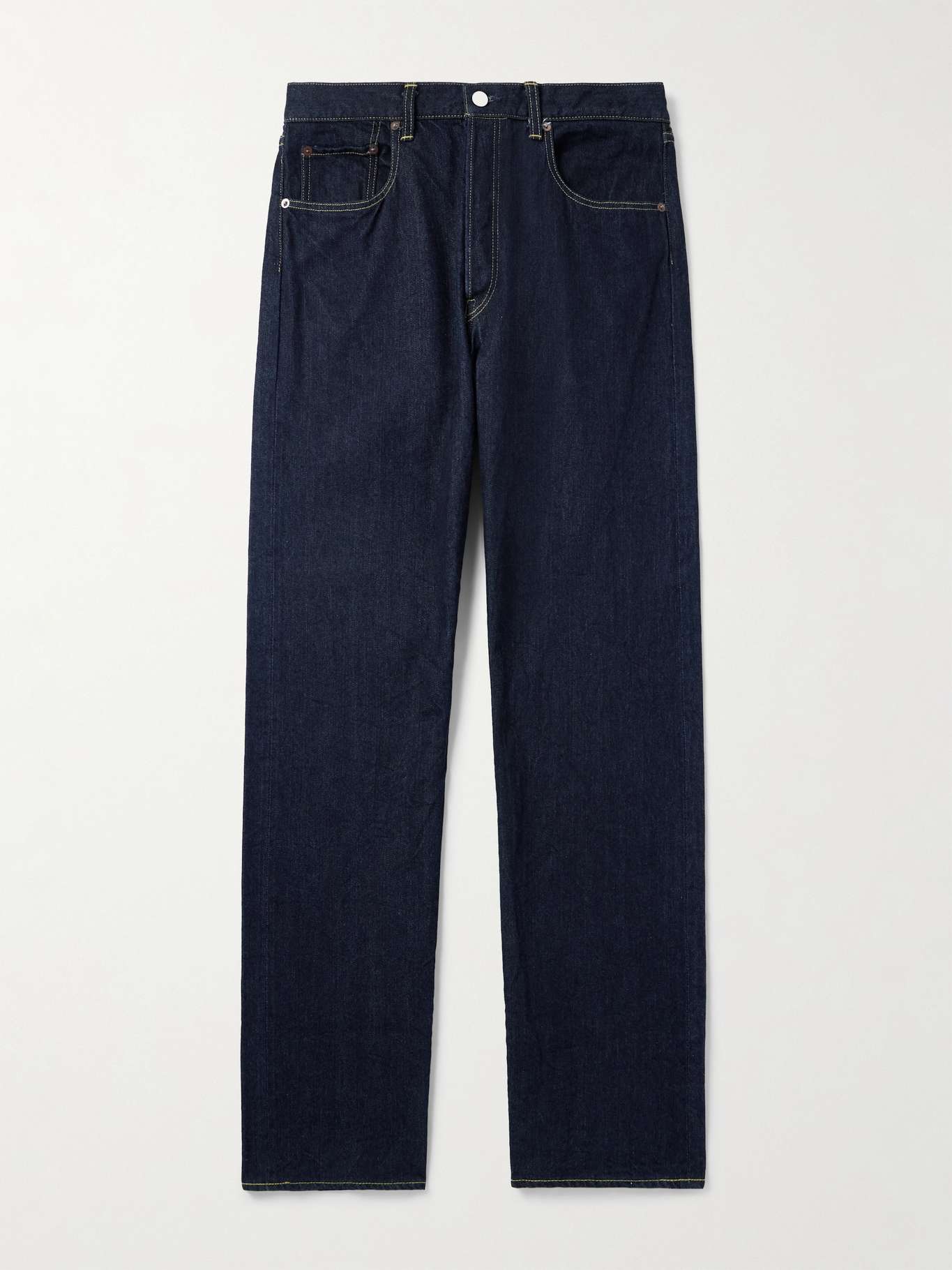 ssstein's 'Vintage Reproduction' jeans are modelled after archival American styles from the '40s to '60s. They've been made in Japan from dark-blue denim woven on shuttle looms and have a clean-lined, tapered cut.