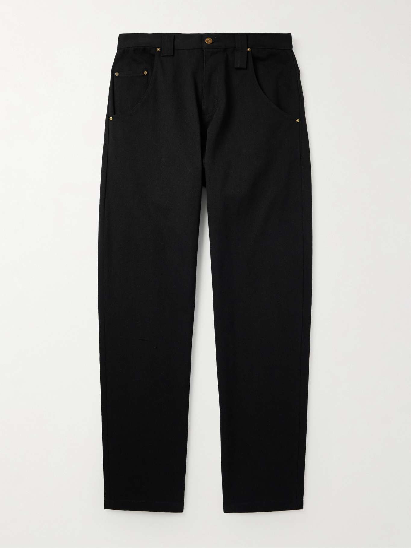 Willy Chavarria's debut AW25 collection draws inspiration from the designer's upbringing in Huron, California. These 'Bad Boy' jeans are cut from black denim and have a signature extra loop at the front.