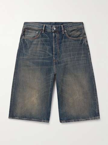 Roman Slim-Fit Straight-Leg Distressed Coated-Denim Shorts