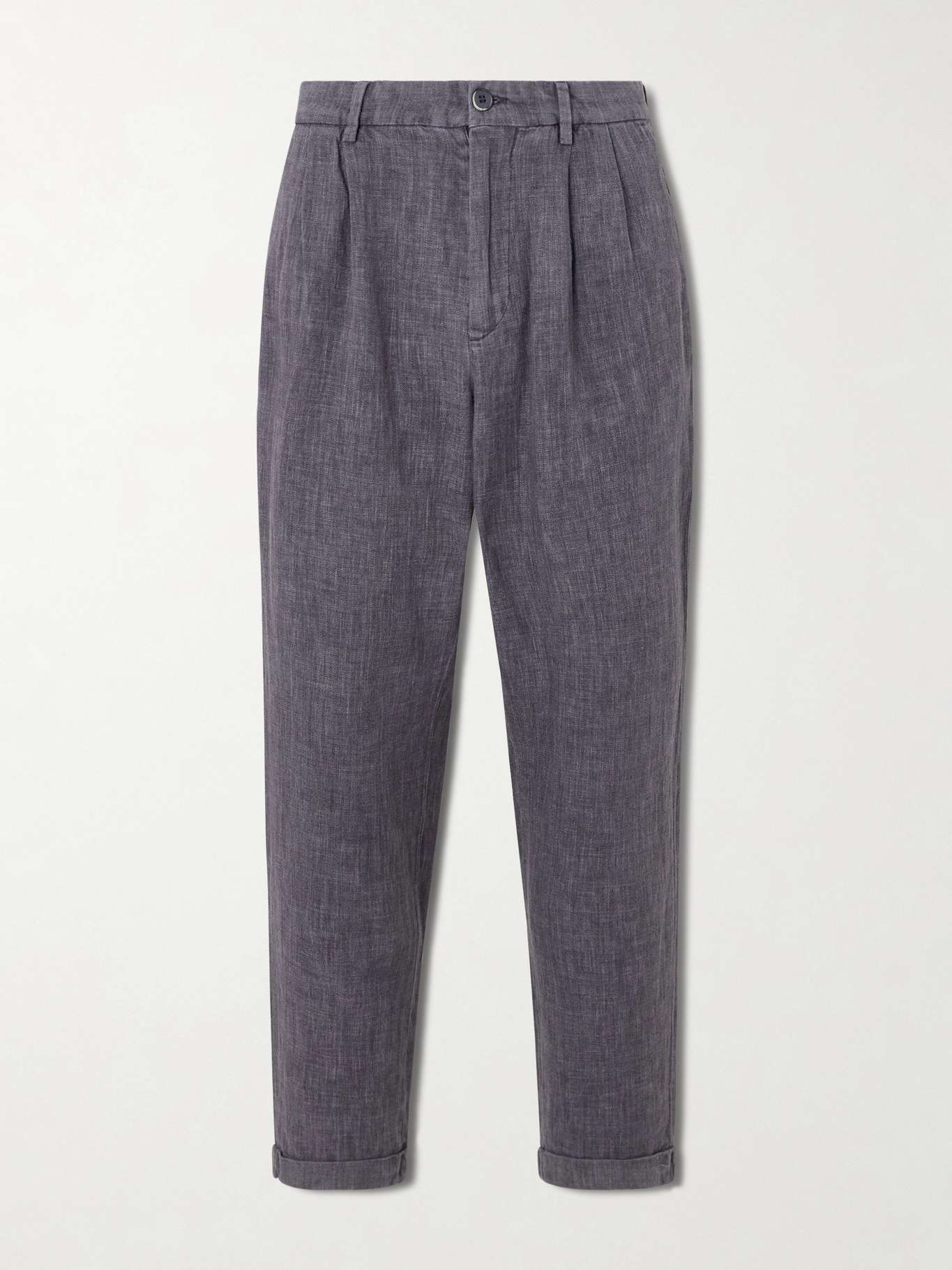 BARENA Cropped Tapered Pleated Linen-Blend Suit Trousers