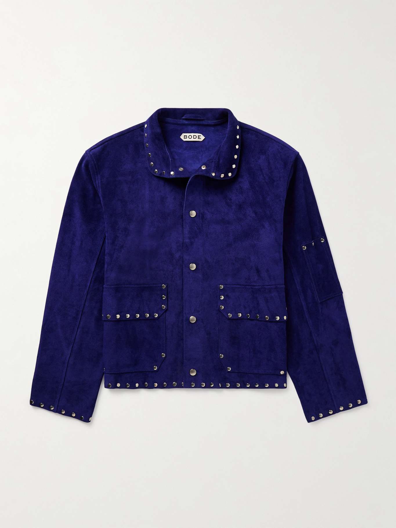 BODE's jacket is modelled on mid-century welding styles. Cut from suede in a deep royal-blue, it's traced with silver-tone studs and has matching snaps etched with the brand's moniker.