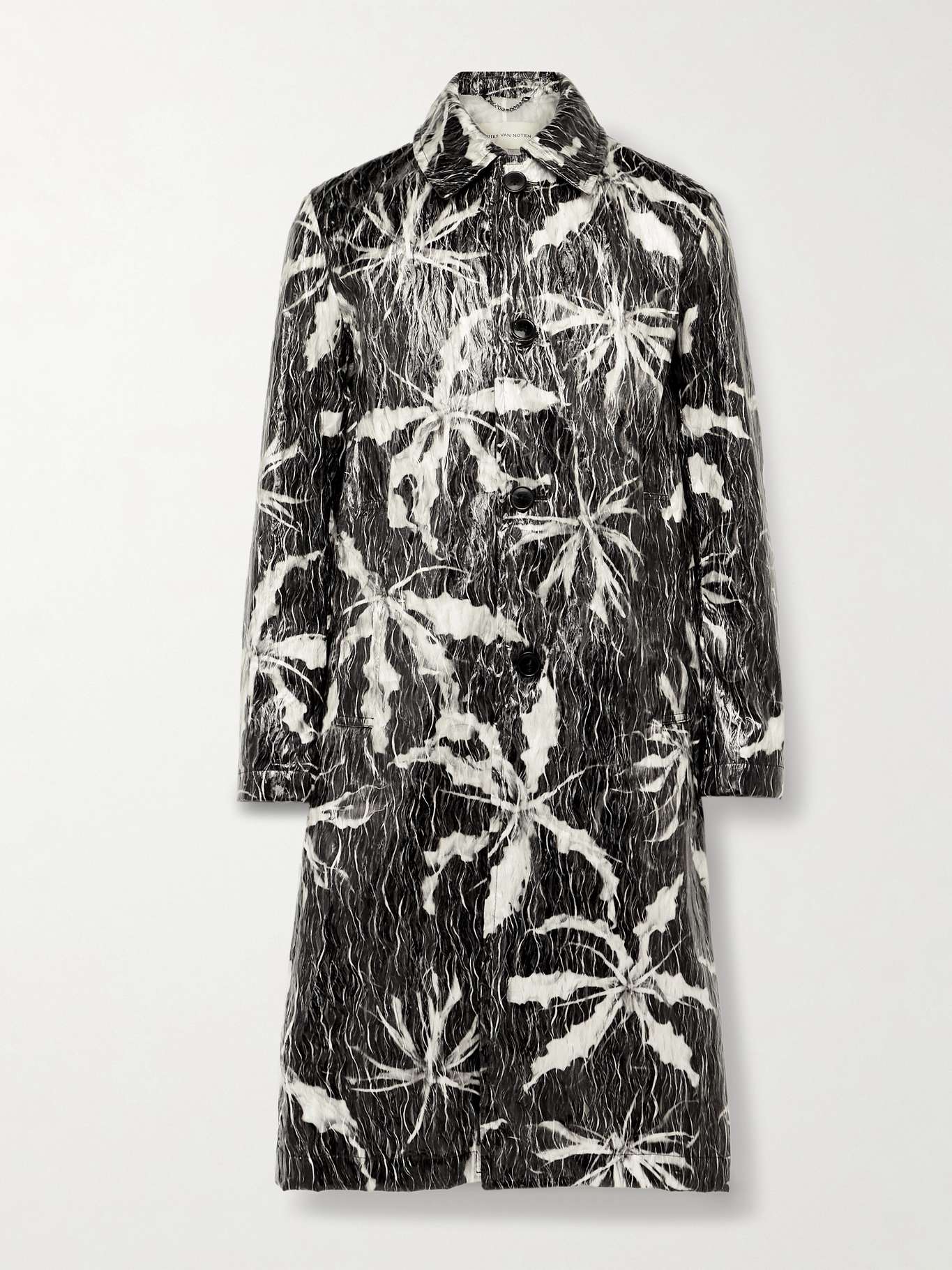 Dries Van Noten's trench coat showcases the label's penchant for bold, experimental design. In a dynamic abstract floral print, it's made from crinkled coated-shell and has a relaxed, longline shape.