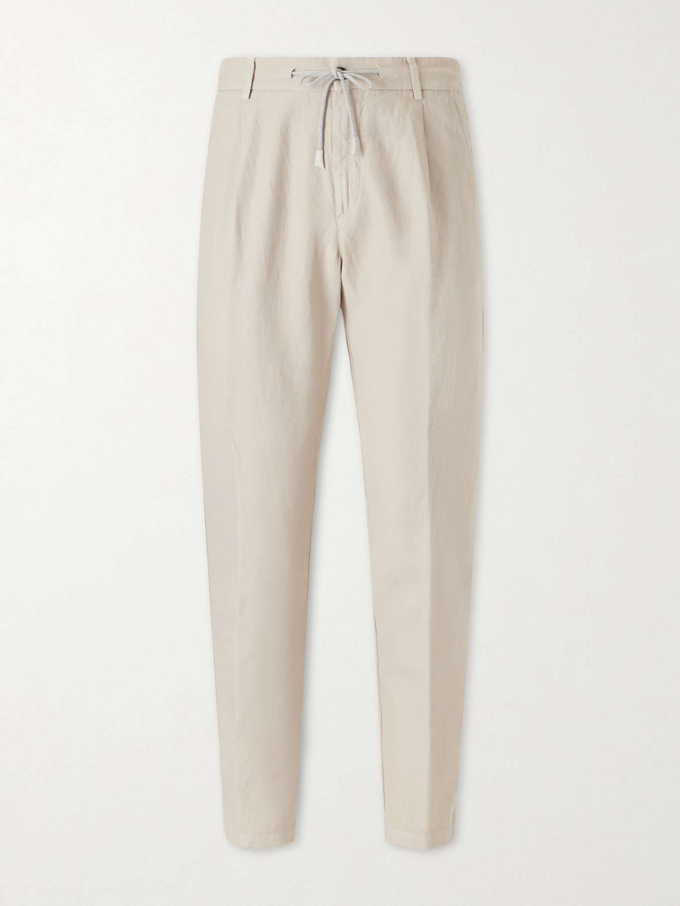 ELEVENTY Straight-Leg Cotton and Linen-Blend Drawstring Trousers