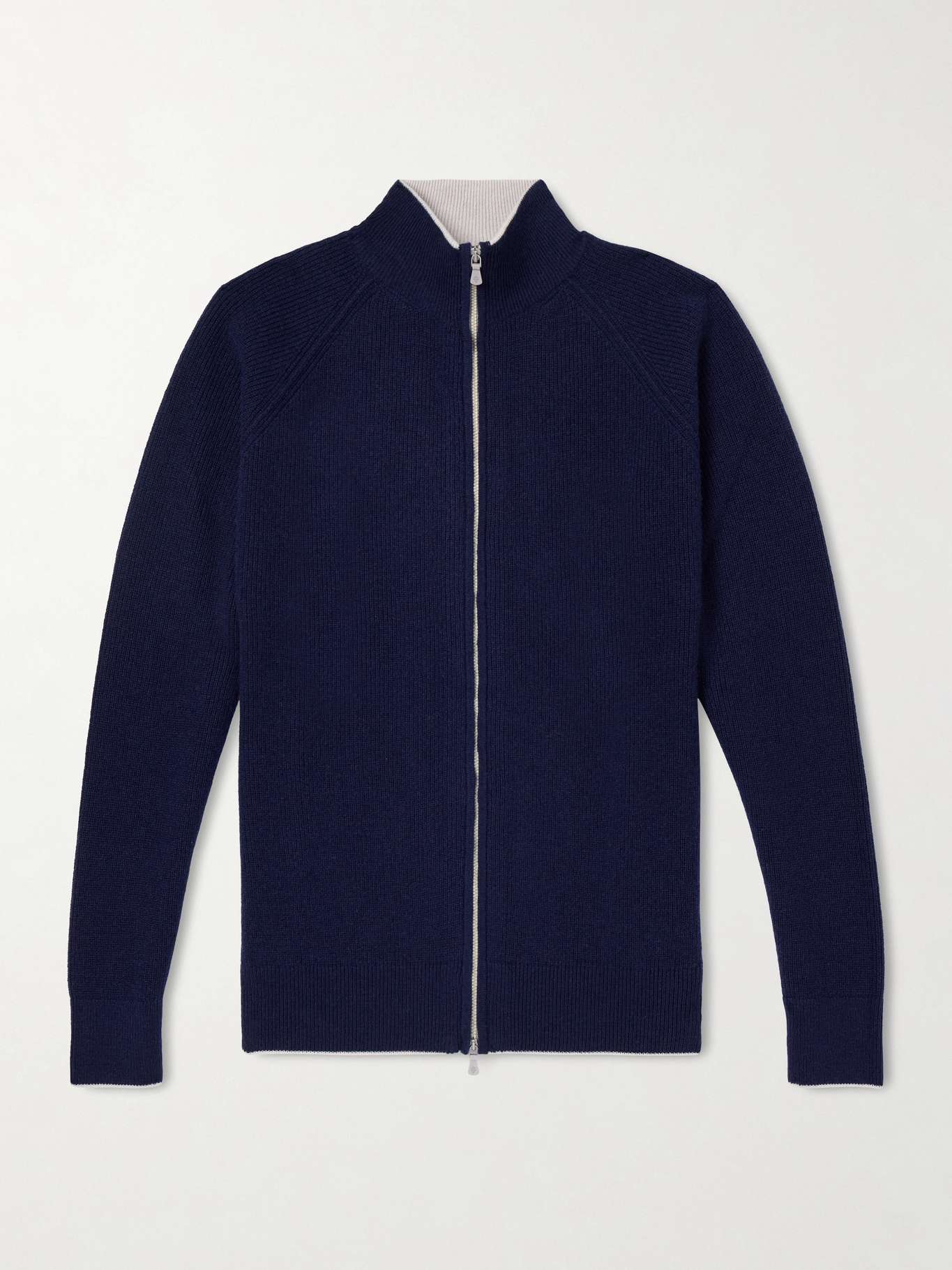 Eleventy's sweater is as comfortable as it is versatile. It's been made in Italy from pure cashmere and is knitted in a ribbed stitch. There's a two-way zip through the front.