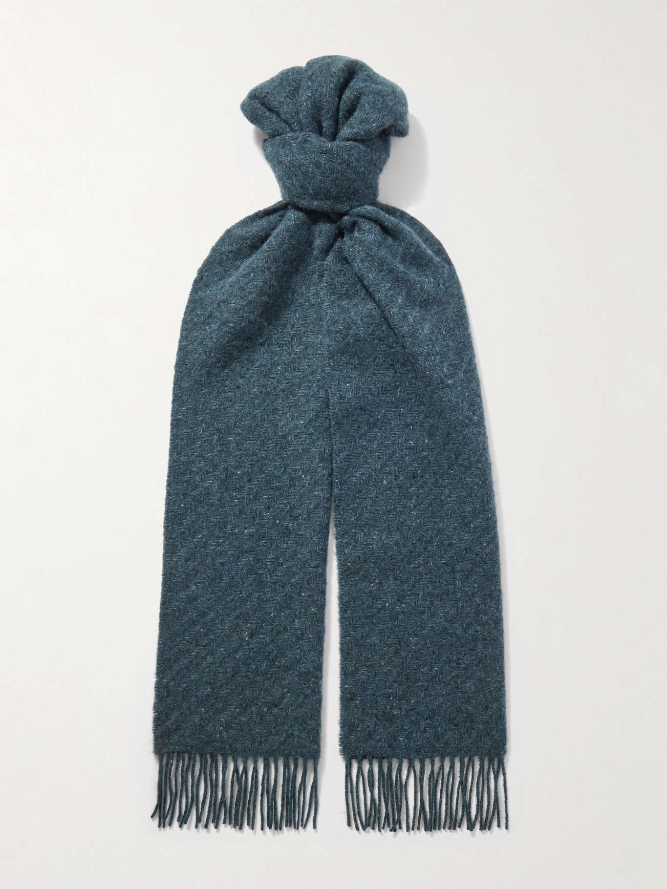 JOHNSTONS OF ELGIN Lofty Fringed Cashmere-Herringbone Scarf