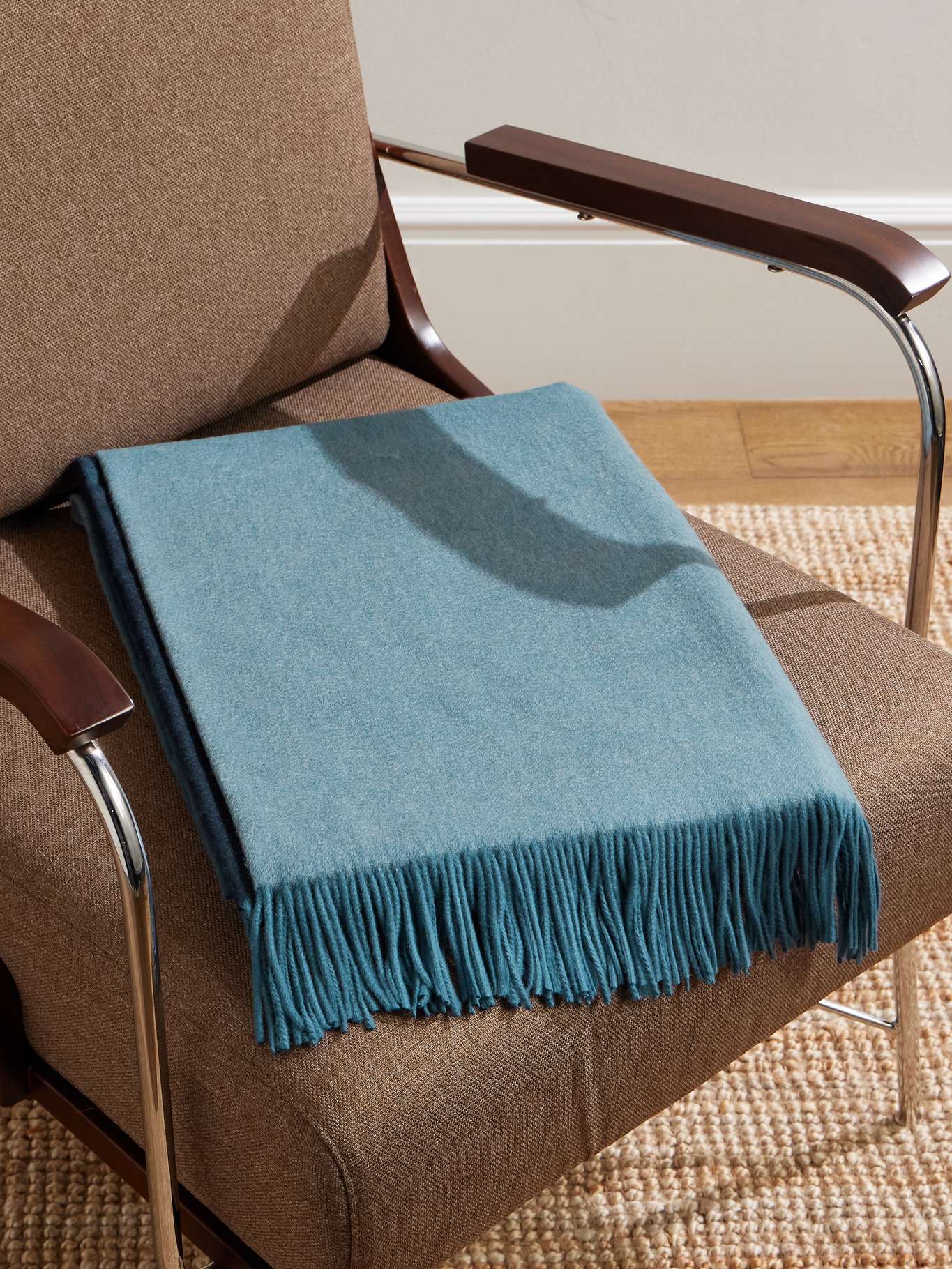 Johnstons of Elgin's throw will bring a touch of warmth and serenity to your living space. It's been made in Scotland from soft cashmere—spun and finished on-site—and treated to create a cool blue ombré effect.
