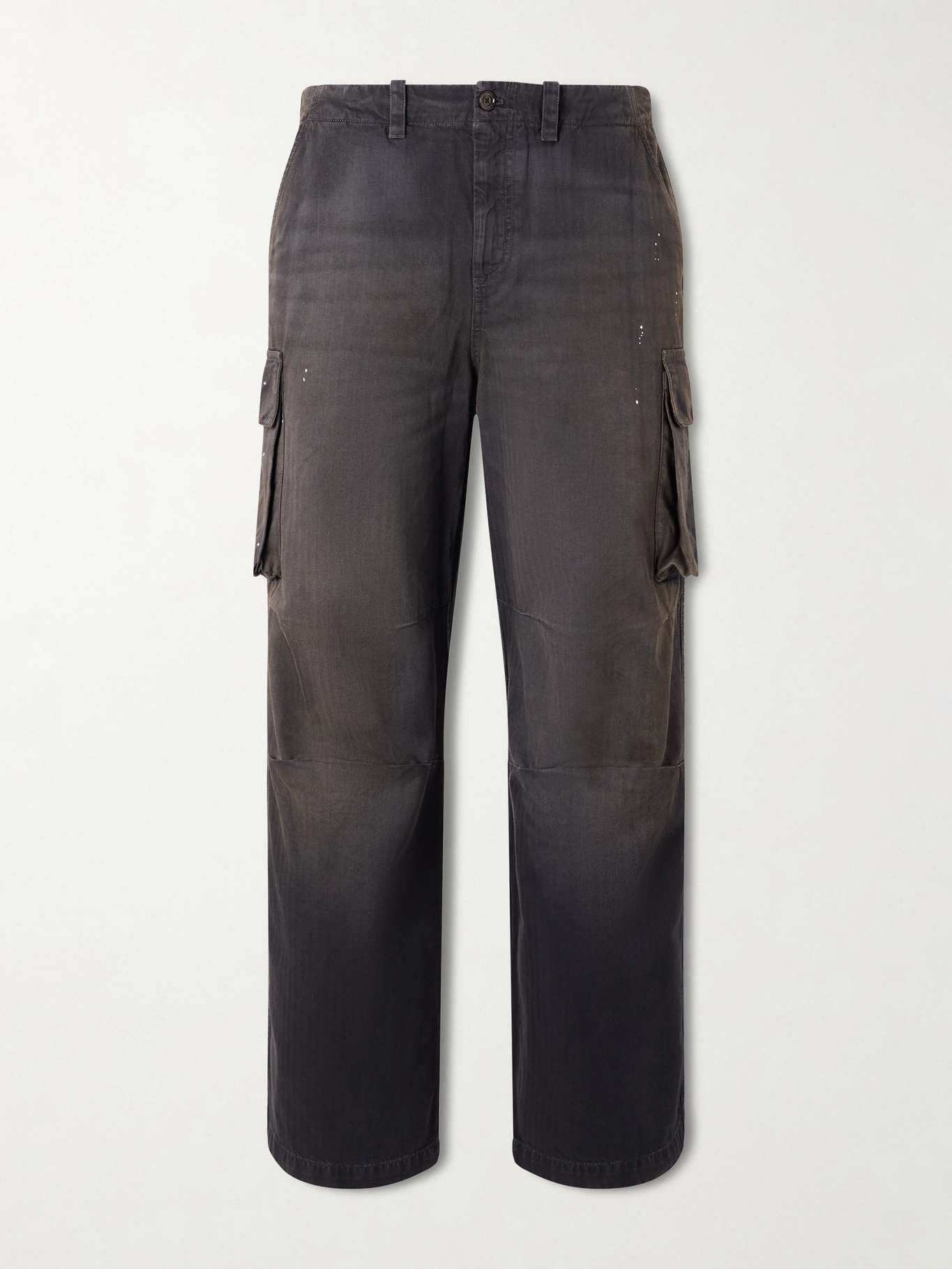 OUR LEGACY Mount Straight-Leg Paint-Splattered Herringbone Cotton-Canvas Cargo Trousers
