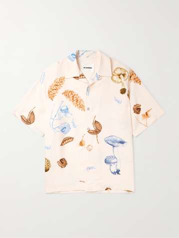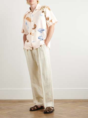 Convertible-Collar Printed Woven Shirt