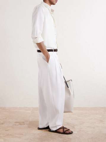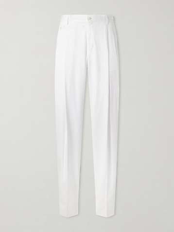 Straight-Leg Pleated Cotton-Twill Trousers