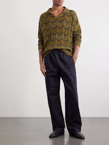 Striped Knitted Cotton Polo Sweater
