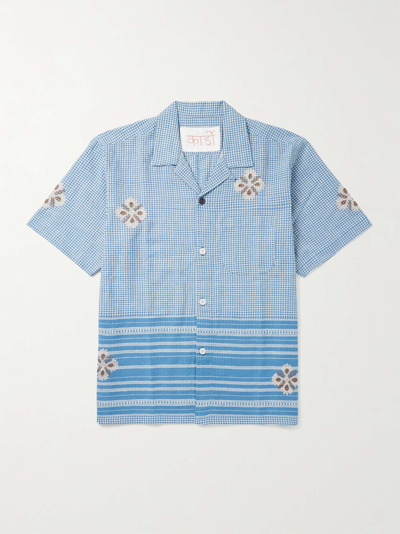 EXCLUSIVE AT MR PORTER. Kardo's 'Ayo' shirt has been made in India from handloomed cotton patterned with checks and stitched with textured stripes. It's decorated all over with embroidered florals.