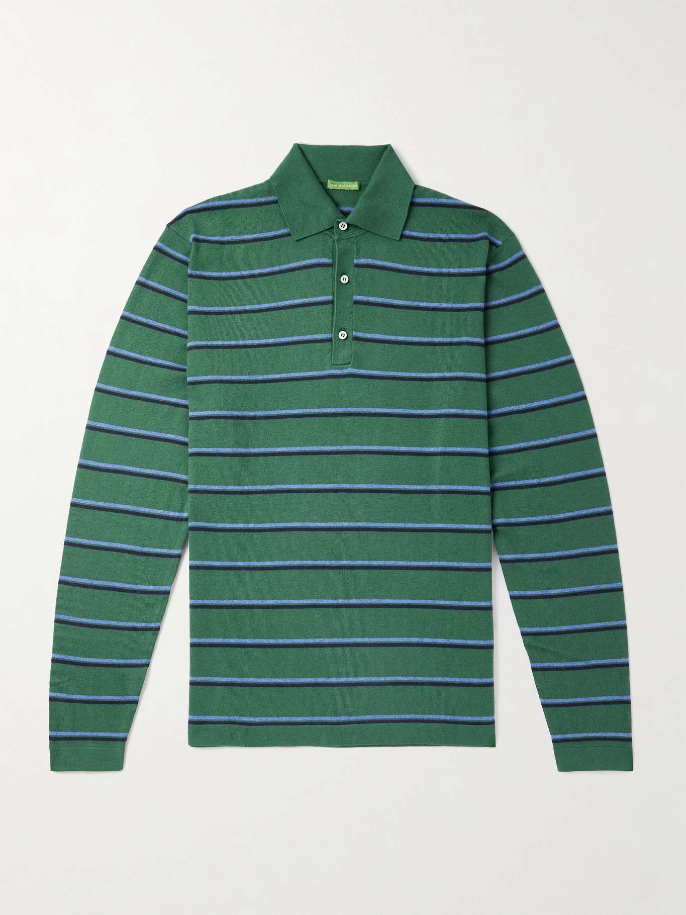 Sid Mashburn's striped polo shirt is rib-knitted from a fine blend of cotton and cashmere, so it feels more like a sweater. It has a comfortable, slim fit and looks sharp with jeans or layered underneath a suit.