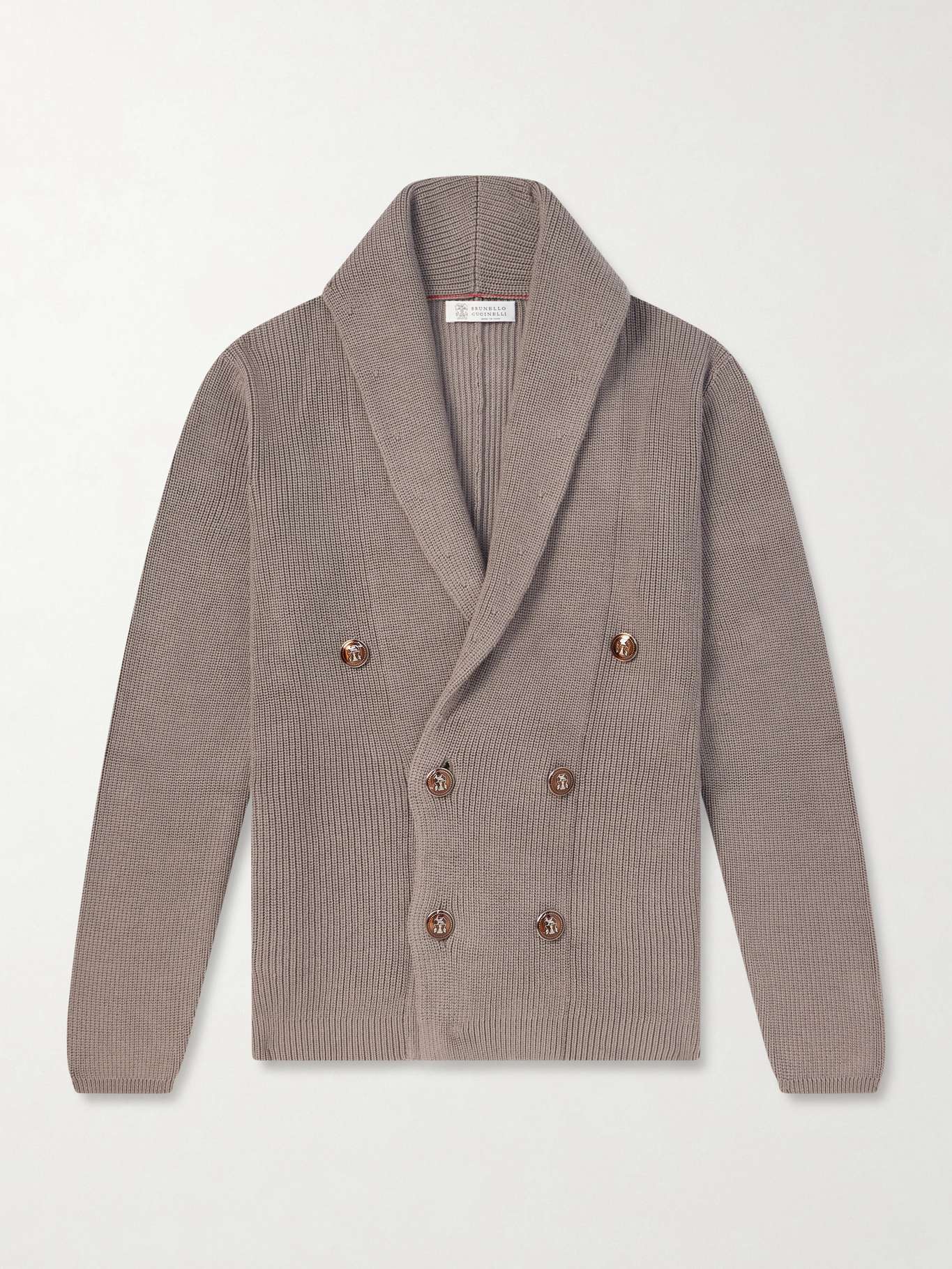 BRUNELLO CUCINELLI Shawl-Collar Double-Breasted Ribbed Cotton Cardigan