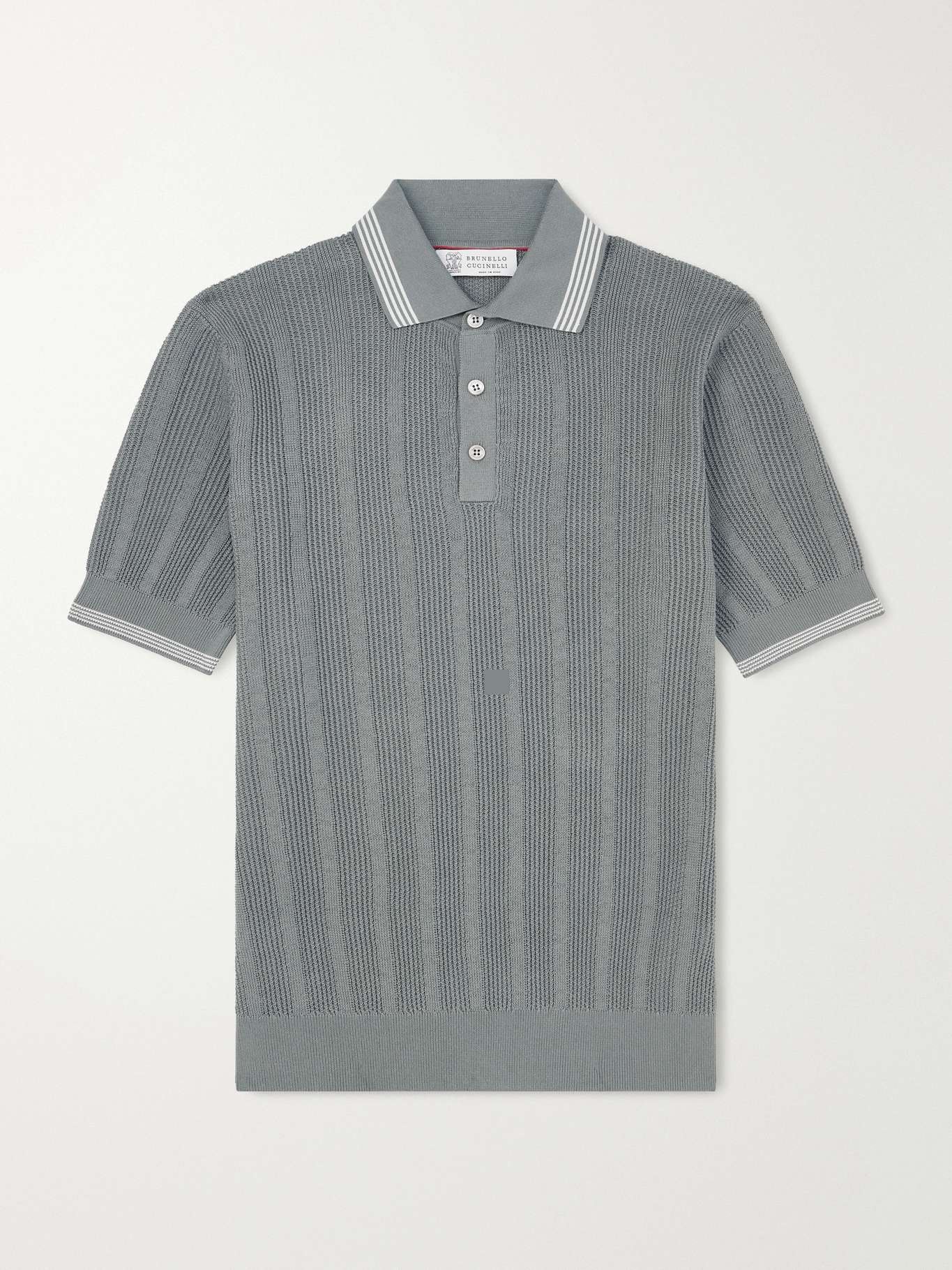 BRUNELLO CUCINELLI Striped Pointelle-Knit Cotton Polo Shirt
