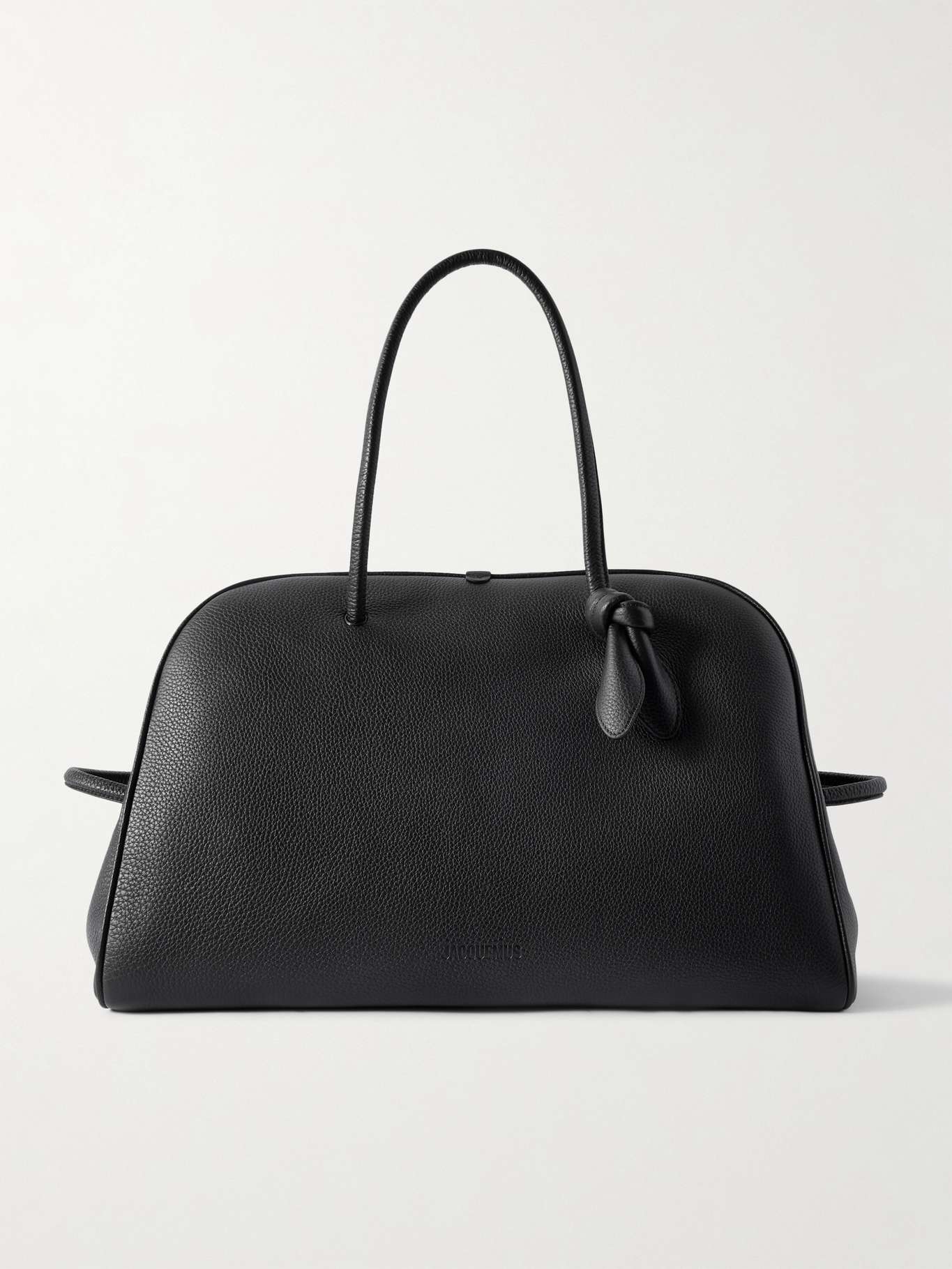 Jacquemus' 'Grand Turismo' bag is inspired by retro bowling styles. It's crafted from full-grain leather and set on lengthy shoulder straps, one of which is knotted into an artful bow. The spacious interior fits spare clothes, headphones and whatever you're reading.
