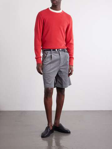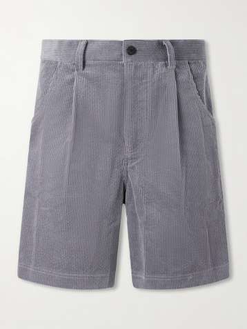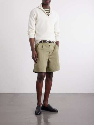Straight-Leg Pleated Cotton and Linen-Blend Shorts