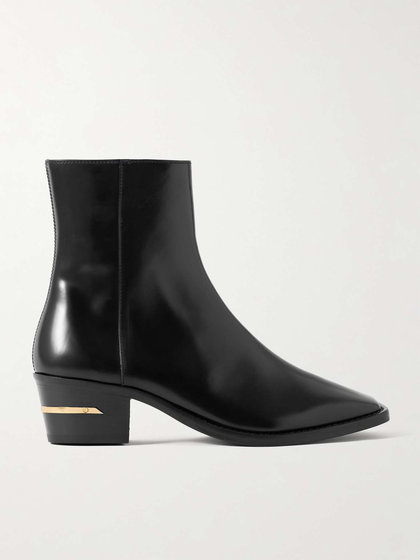 Sleek and understated, AMIRI's Chelsea boots are minimally detailed with gold hardware along the block heels. They're crafted from black leather with a glossed finish and have squared toes.