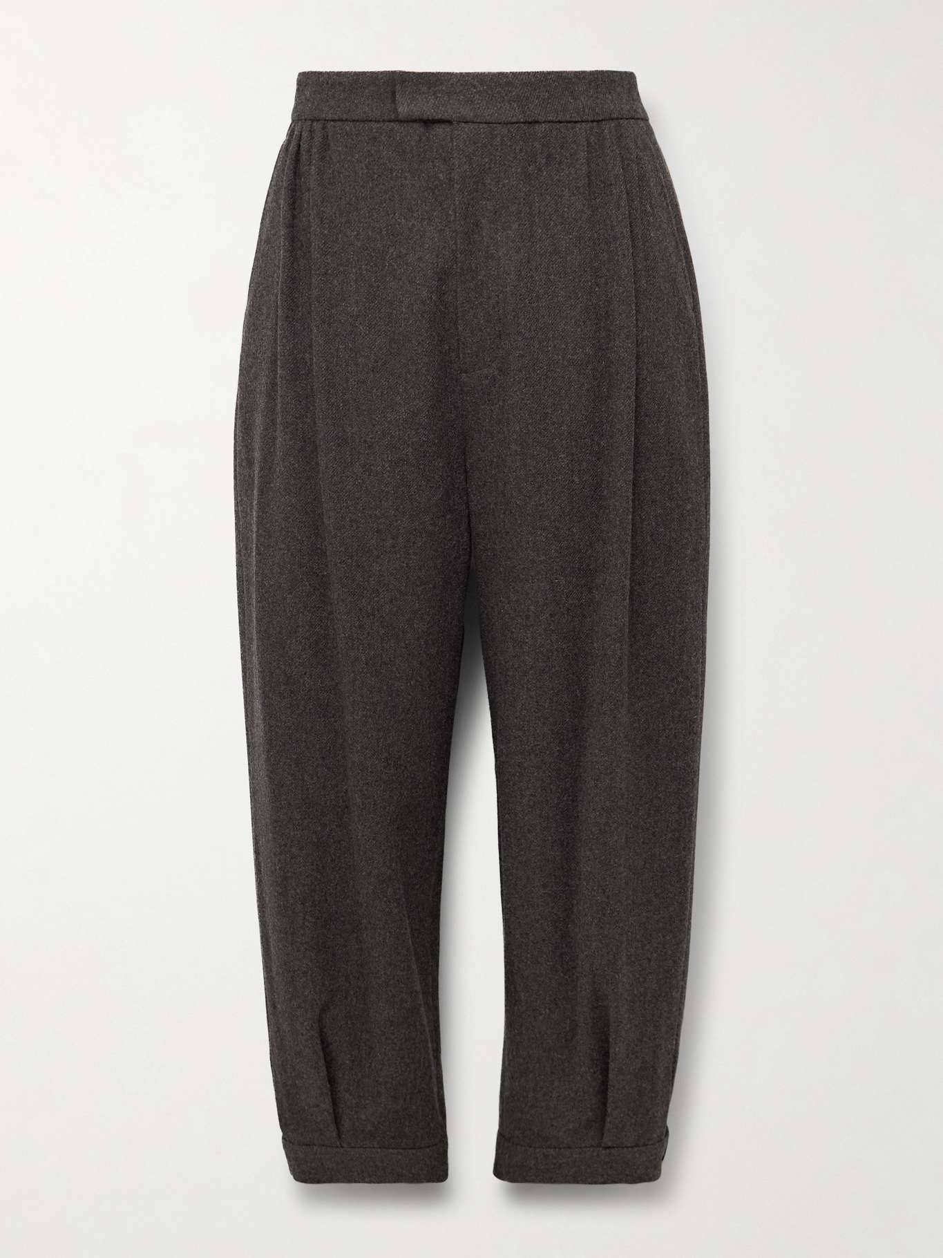 Amomento's trousers are designed with double pleats that emphasise their tapered shape. They're tailored from brown wool and fall to adjustable cuffs.