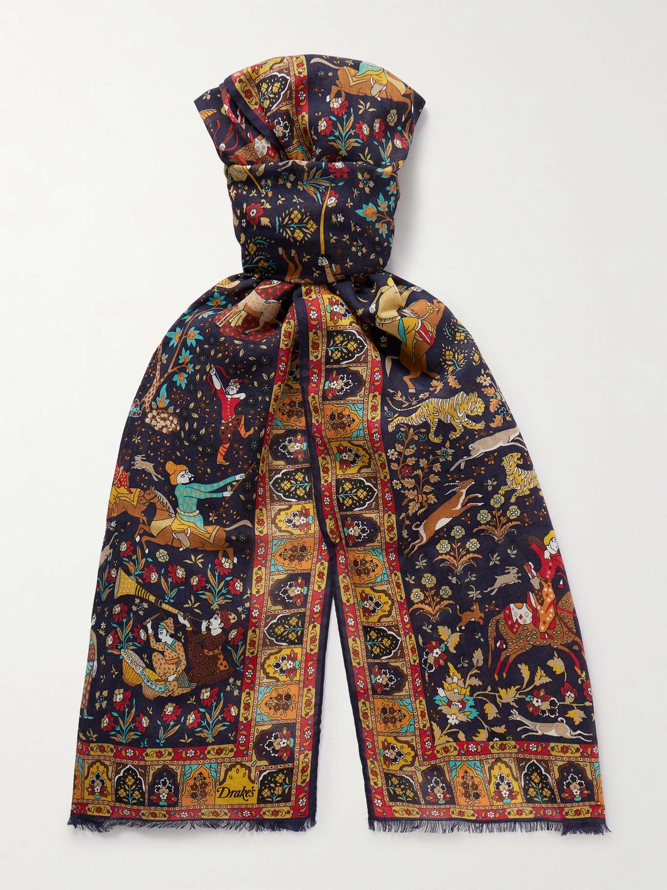 Printed scarves were the first items of clothing Drake's produced when it was founded in 1977. This style is richly detailed, with colourful illustrations referencing Moguls amongst florals and foliage. It's made from wool and silk-blend that's pleasantly soft on the skin.