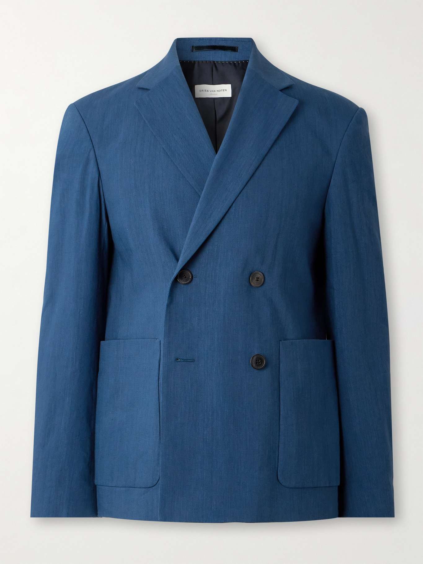 EXCLUSIVE AT MR PORTER. Dries Van Noten is celebrated for its meticulous attention to detail. This double-breasted blazer is tailored from a cobalt-blue linen-blend with high-gorge notch lapels and oversized patch pockets. Wear yours with the matching trousers for a casual take on traditional suiting.