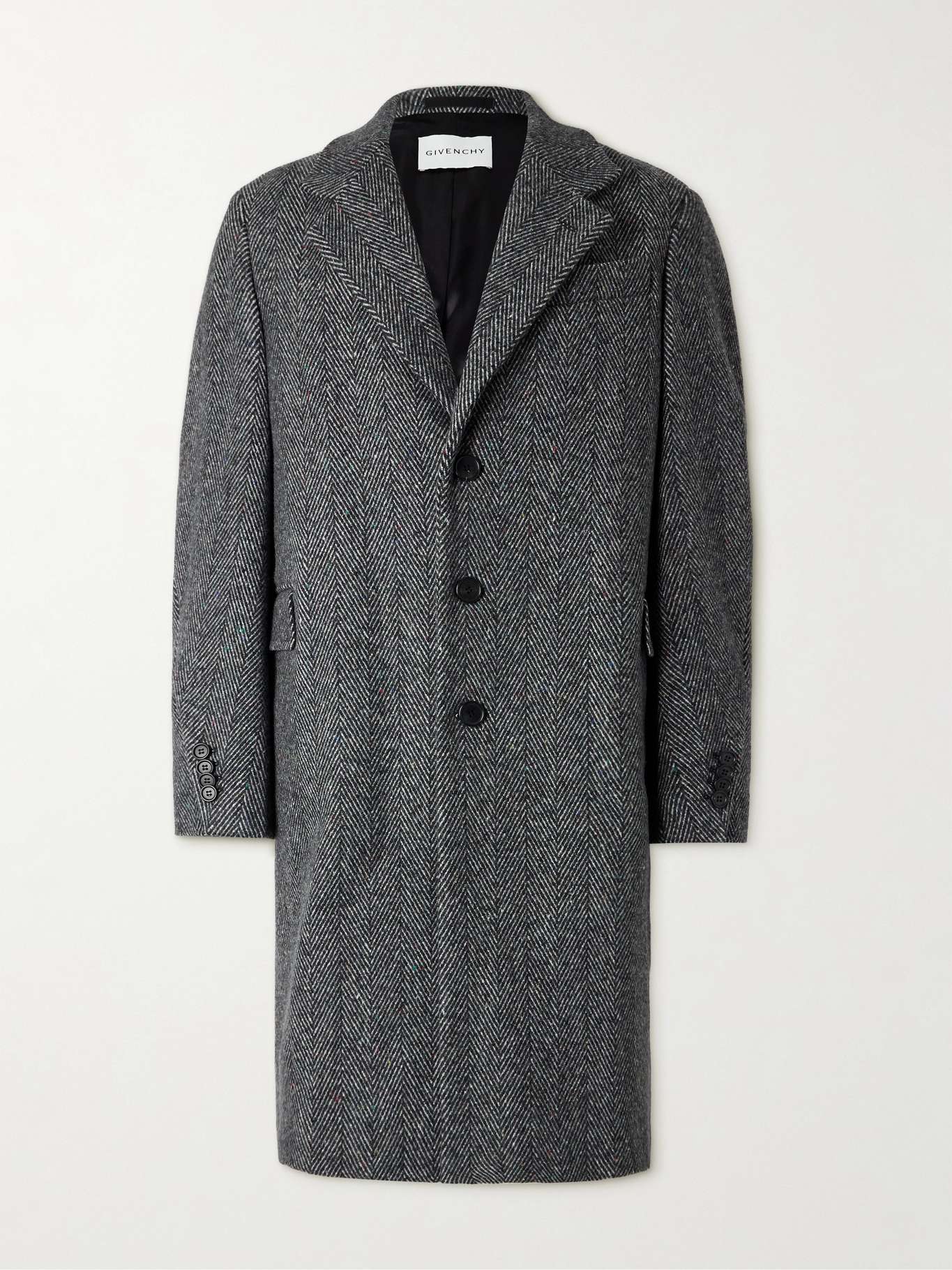 Givenchy's coat is woven in a herringbone motif and flecked with colourful threads for a characterful Donegal-inspired finish. It's been made in Italy from a substantial wool-blend and is cut for a relaxed fit to accommodate layers underneath.