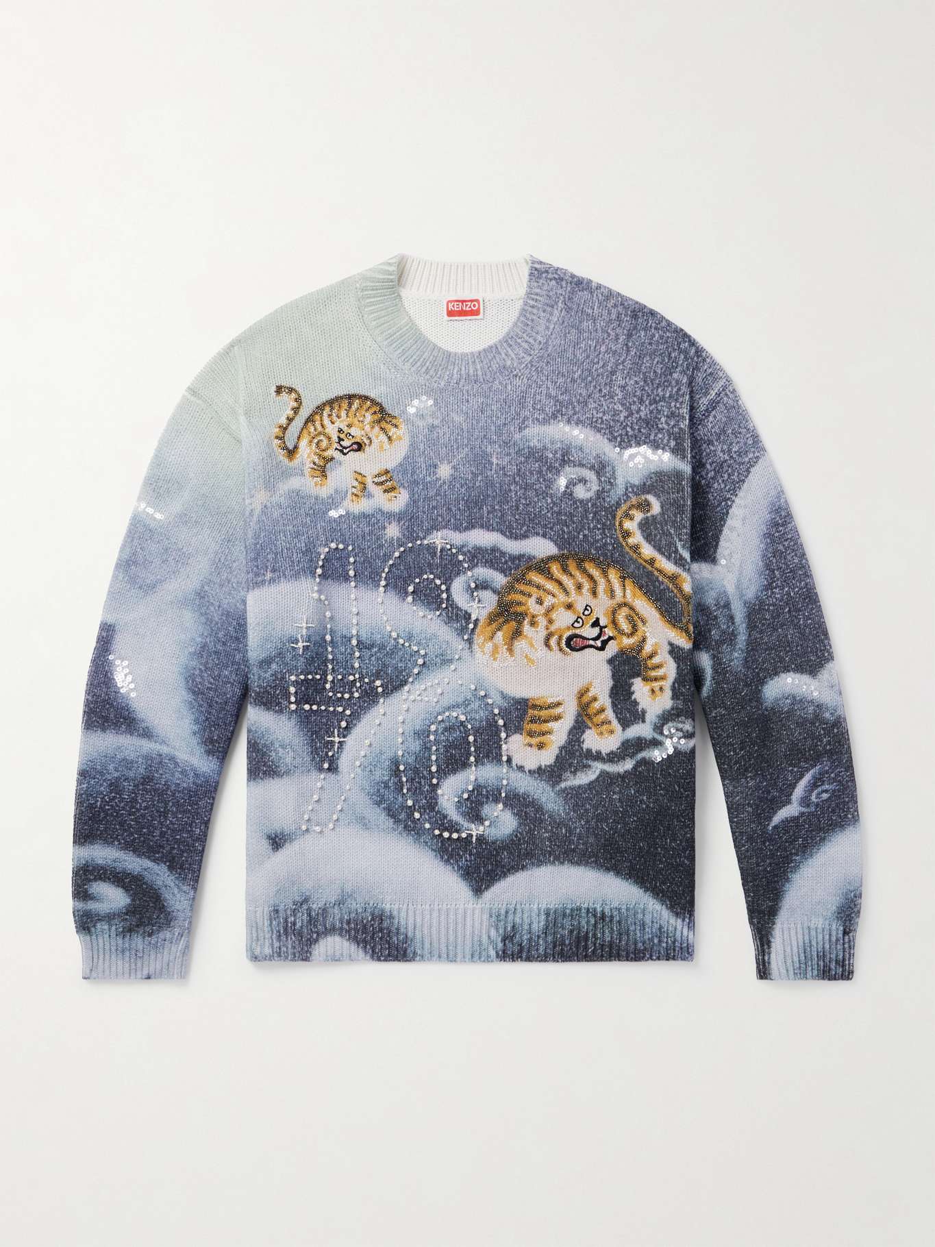 KENZO Cloud Tiger Embellished Cotton-Blend Sweater