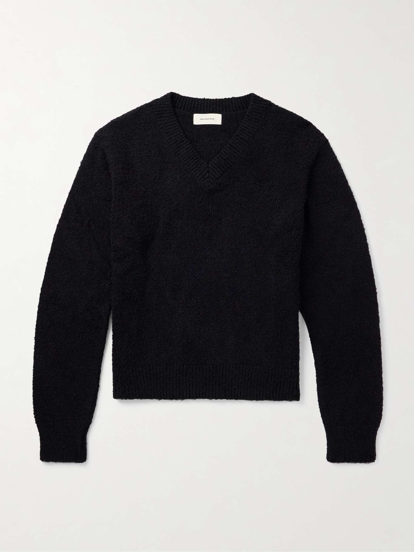 mfpen's sweater is knitted from organic cotton, which has been combed for softness, smoothness and durability. The V-neck looks great layered over a crewneck tee.
