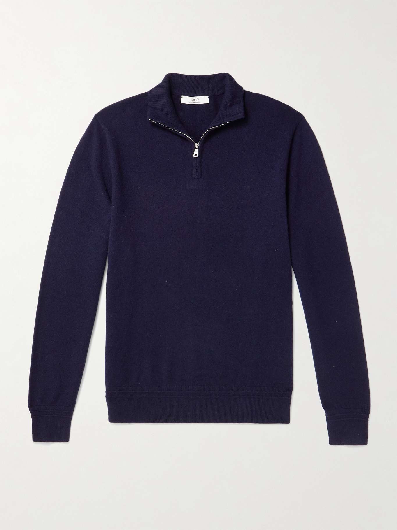 DESIGNED BY MR PORTER. Mr P.'s 'James' sweater has a half-zip placket, so you can adjust the coverage. One to wear to boardrooms and weekend events, it's knitted from pure cashmere for a naturally soft and flexible handle. Wear it with sweats or tailored trousers.