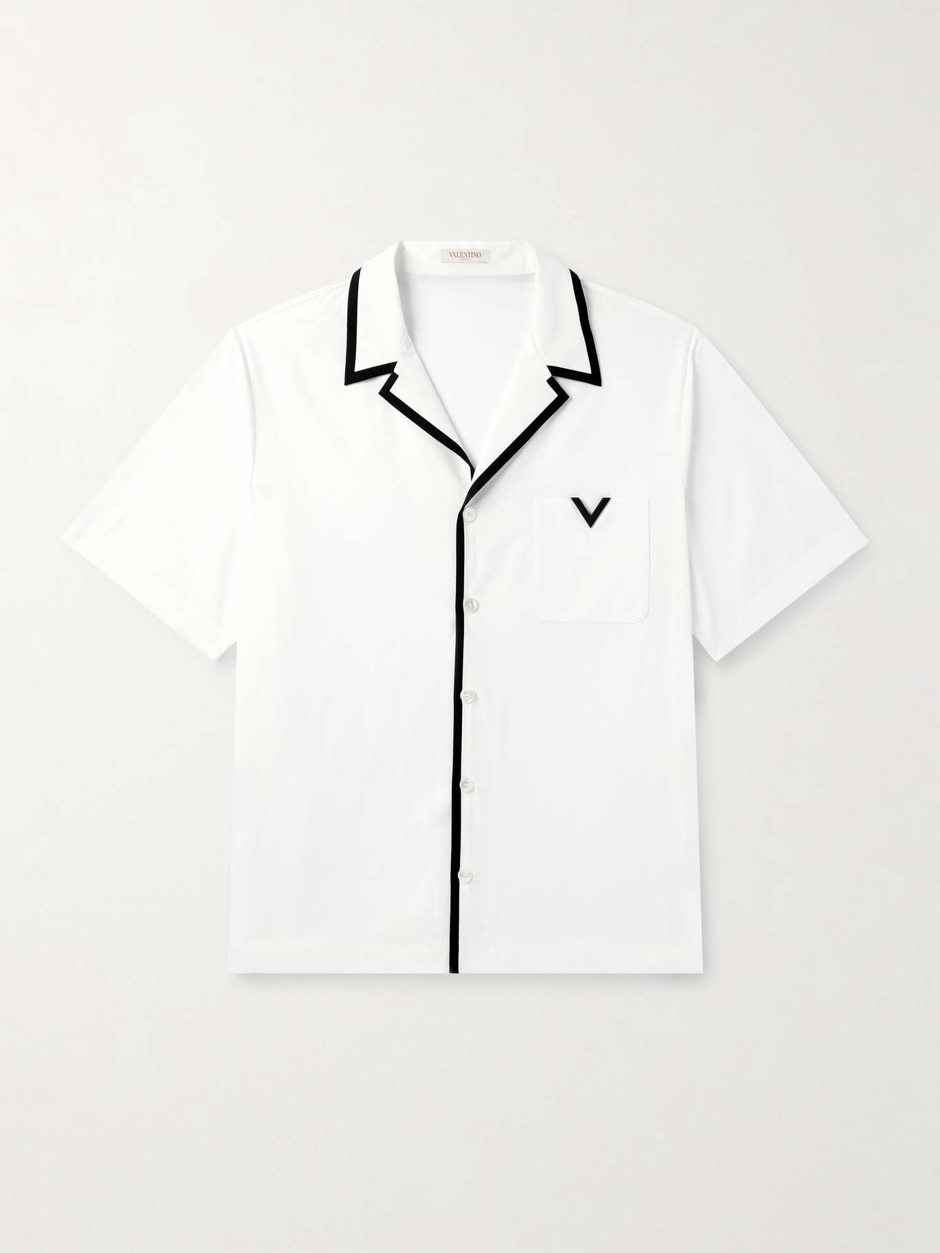 Valentino Garavani's shirt recalls '50s bowling styles, but the embellished 'V' on the pocket makes a graphic, modern touch. It's cut in a retro boxy fit from cotton-poplin.