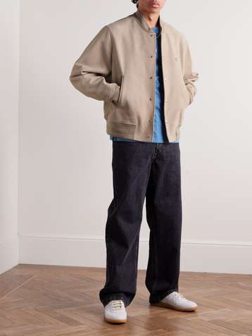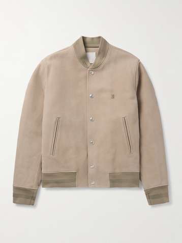 Padded Logo-Embellished Full-Grain Nubuck Bomber Jacket