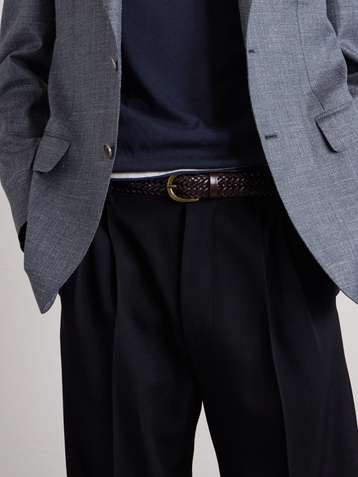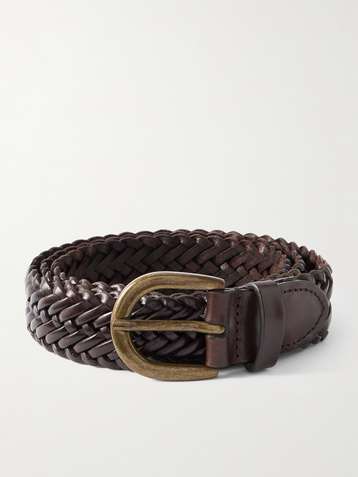 3.5cm Leather-Trimmed Woven Elastic Belt