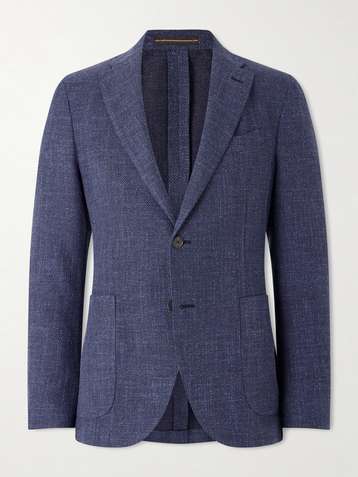 Kent Suede-Trimmed Checked Linen and Wool-Blend Blazer