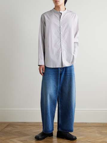 + Aaron Levine Nick Grandad-Collar Striped Cotton Shirt