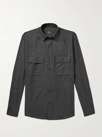Button-Down Collar Cotton and Cashmere-Blend Twill Shirt