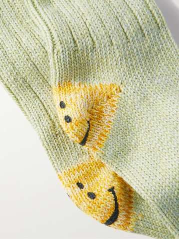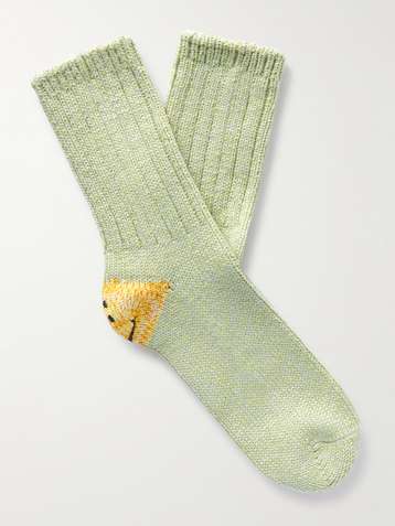 Intarsia Cotton and Hemp-Blend Socks
