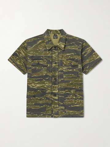 Camouflage-Print Cotton-Riptop Shirt