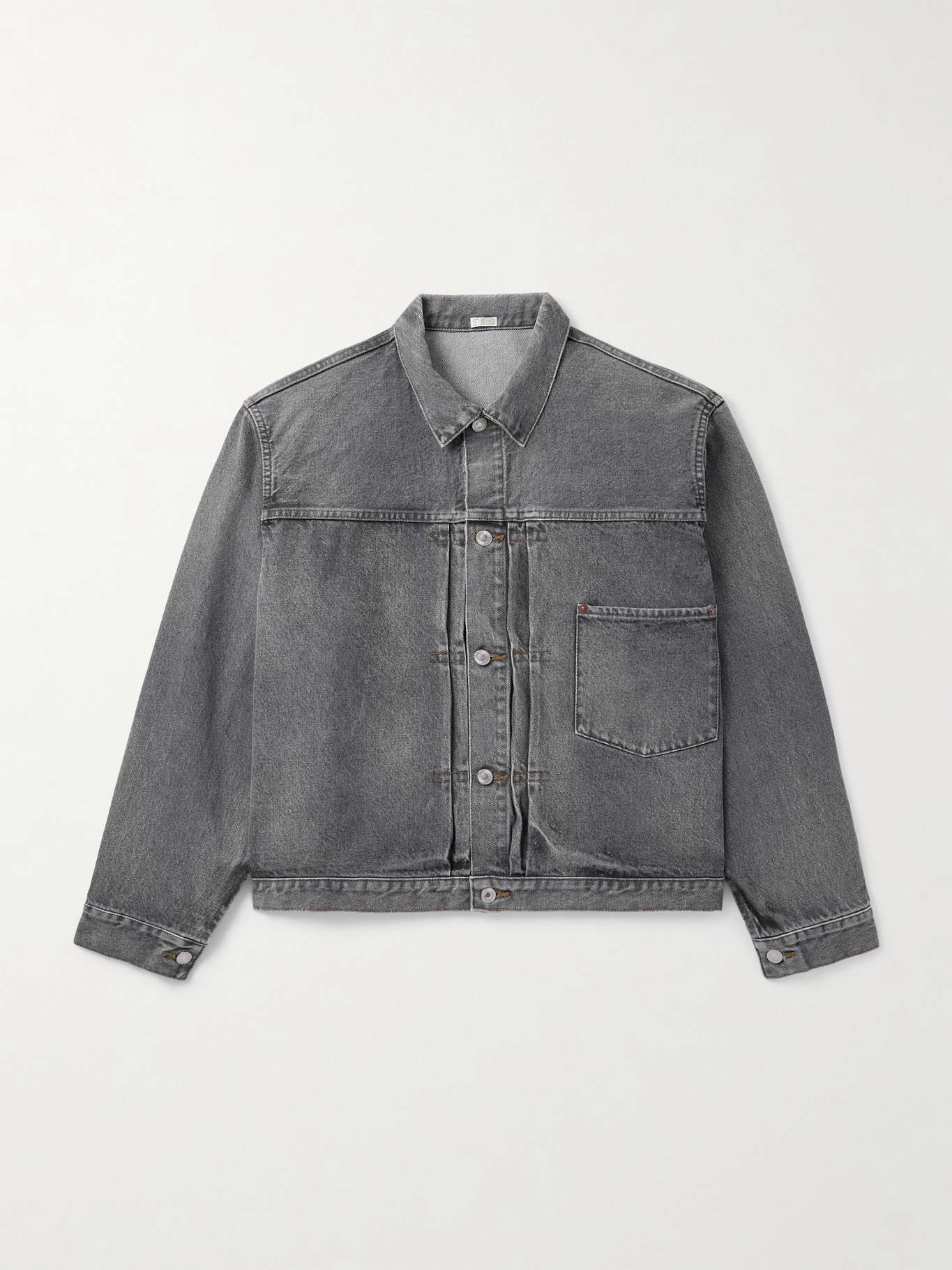 A.PRESSE is inspired by vintage Americana. Modelled after trucker styles from the '50s and '60s, this jacket is cut for a boxy fit from 14oz. denim and has traditional pleats along the button-fastening placket.