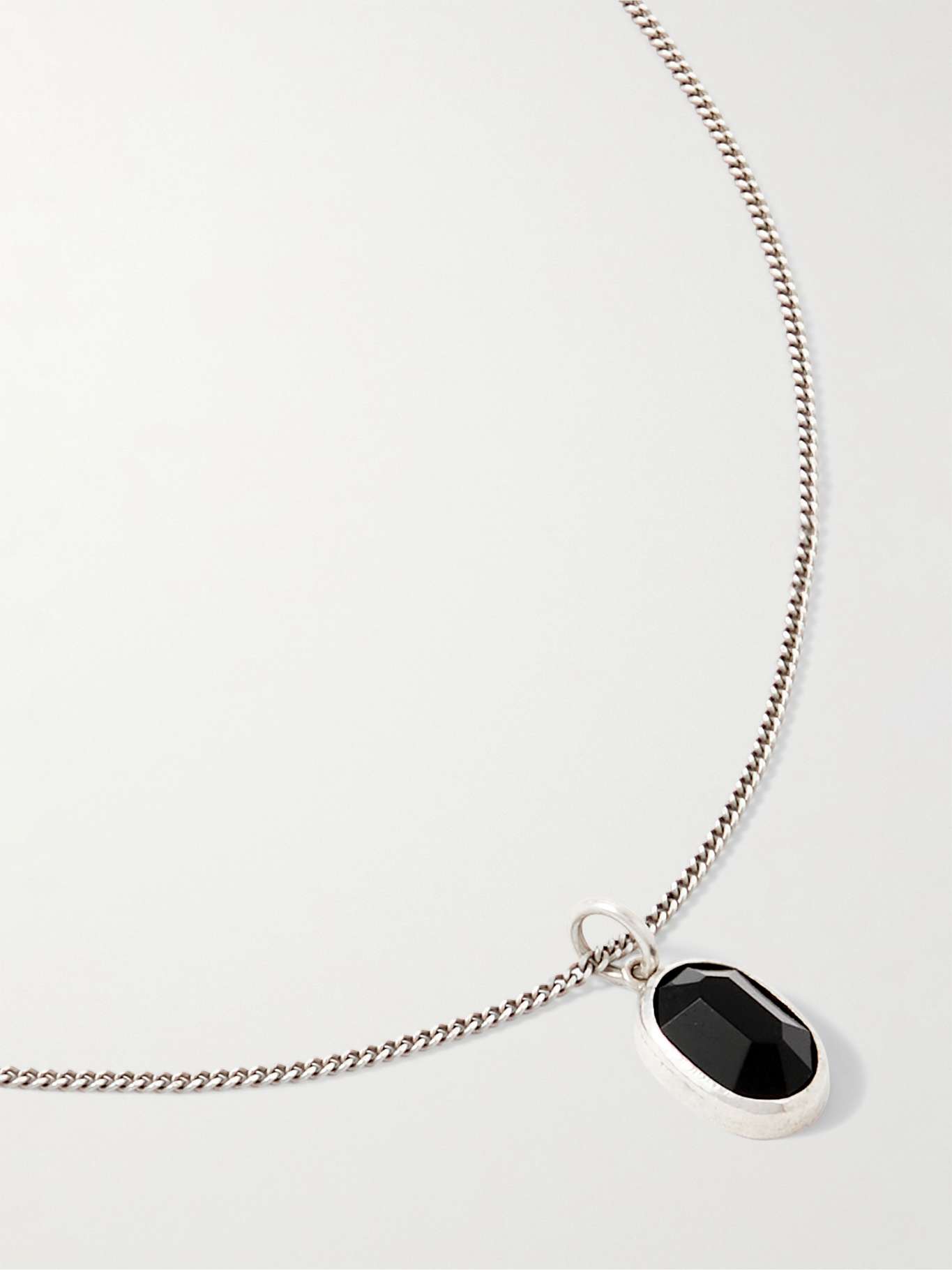 CELINE HOMME's necklace is crafted from silver and strung with an oval pendant that features a faceted onyx stone. It has a logo-engraved clasp fastening and adjusts between three lengths, which makes it ideal for layering with other chains.