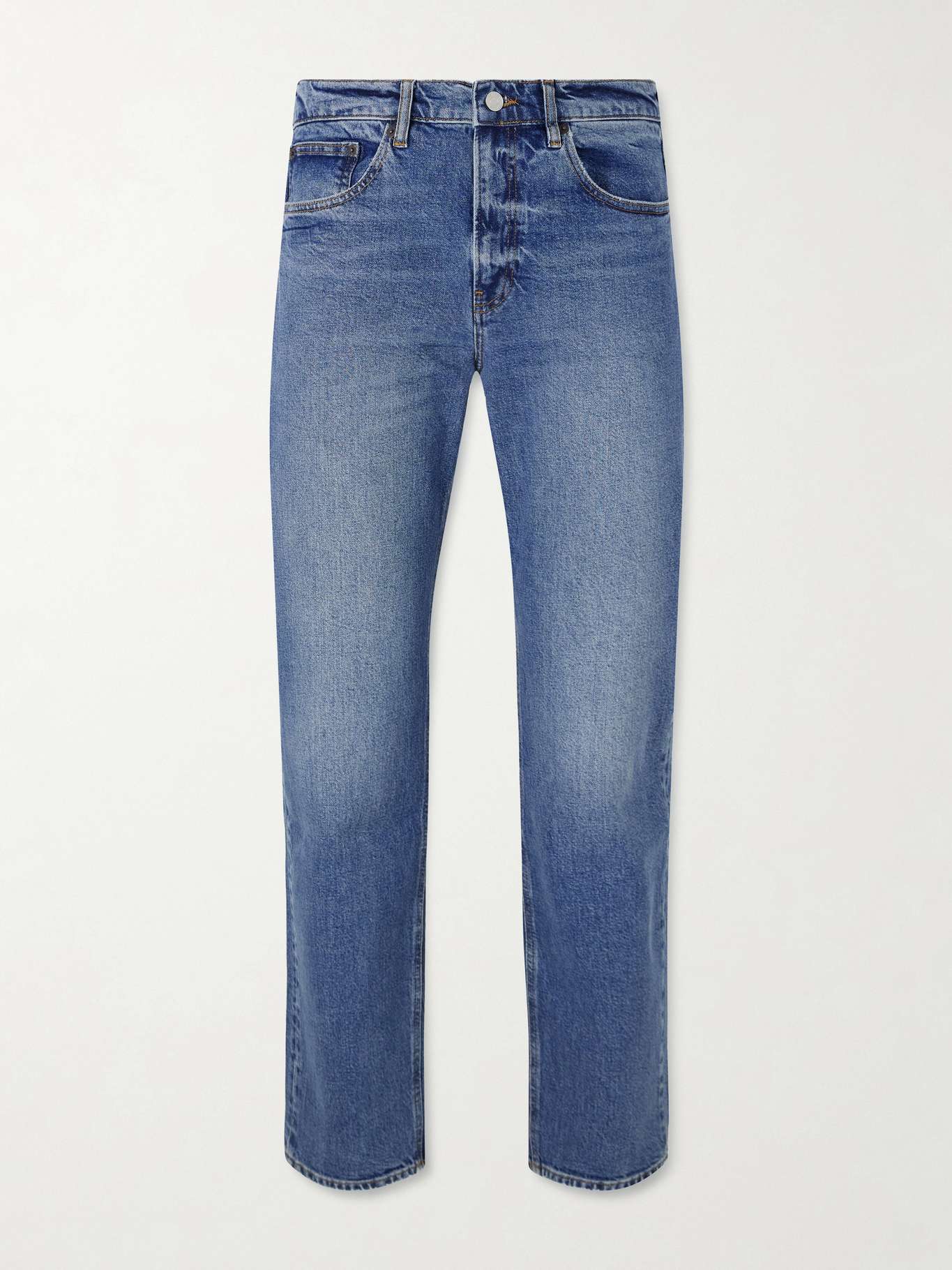 FRAME's 'The Straight' jeans are a true classic. They're cut from denim in a mid-rise, five-pocket profile with a zipped fly. The amber topstitching is selected to complement the 'Eternity' wash.