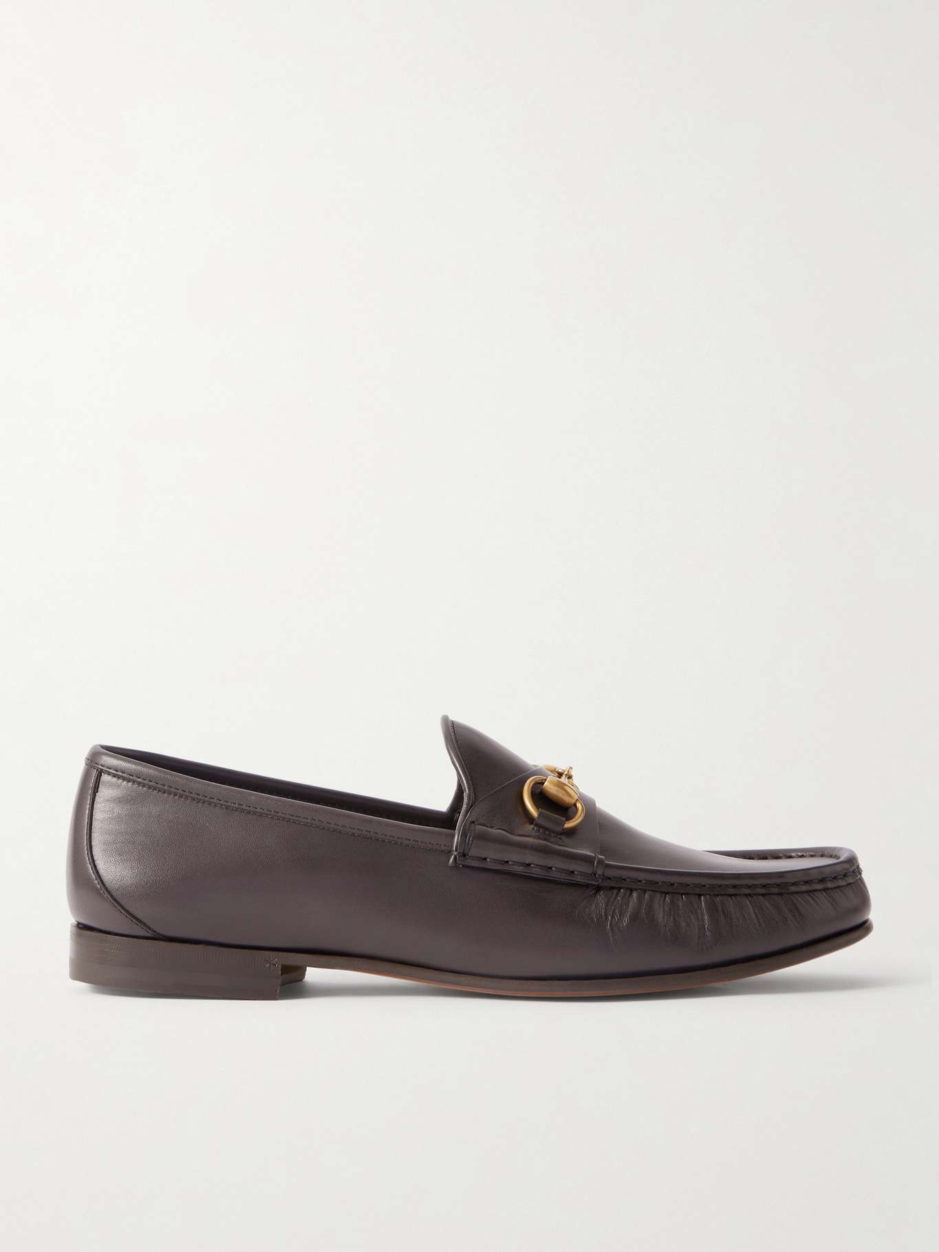 Gucci's iconic horsebit loafers are featured in the permanent collection at the Metropolitan Museum of Art in New York City. This pair has been handmade in Italy from supple leather with the same slender shape and burnished-gold snaffles as the original design from the 1950s.