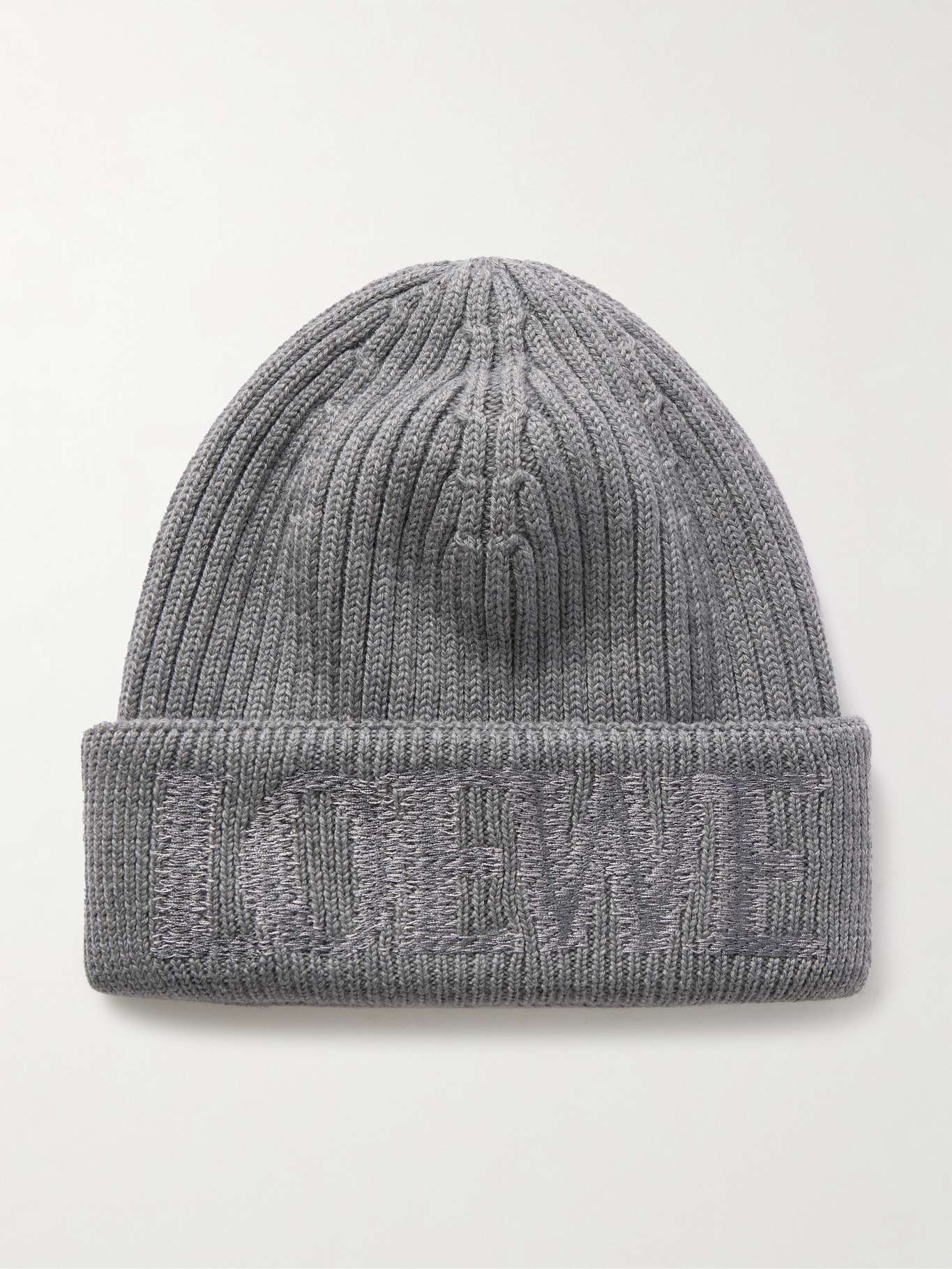 The turned-up cuff on Loewe's beanie is embroidered with the house's name in a blurred font. Naturally warm, it's knitted from medium-weight wool in a chunky ribbed stitch.