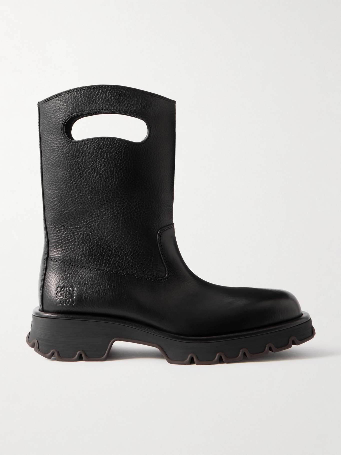 The curved cutouts on Loewe's 'Bobby' boots resemble bag handles and make it easy to pull them on and off. They've been crafted in Italy from leather with stamped 'Anagram' logos and sturdy rubber lug soles that offer plenty of grip.