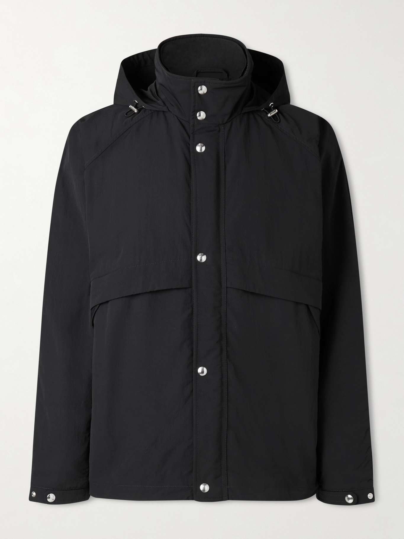 DESIGNED BY MR PORTER. Designed for unpredictable weather, Mr P.'s jacket is cut from durable recycled-shell with plenty of room and has silver-tone snaps at the placket and cuffs. The hood is laced with toggles, so you can tighten it and shield yourself from wind and rain.