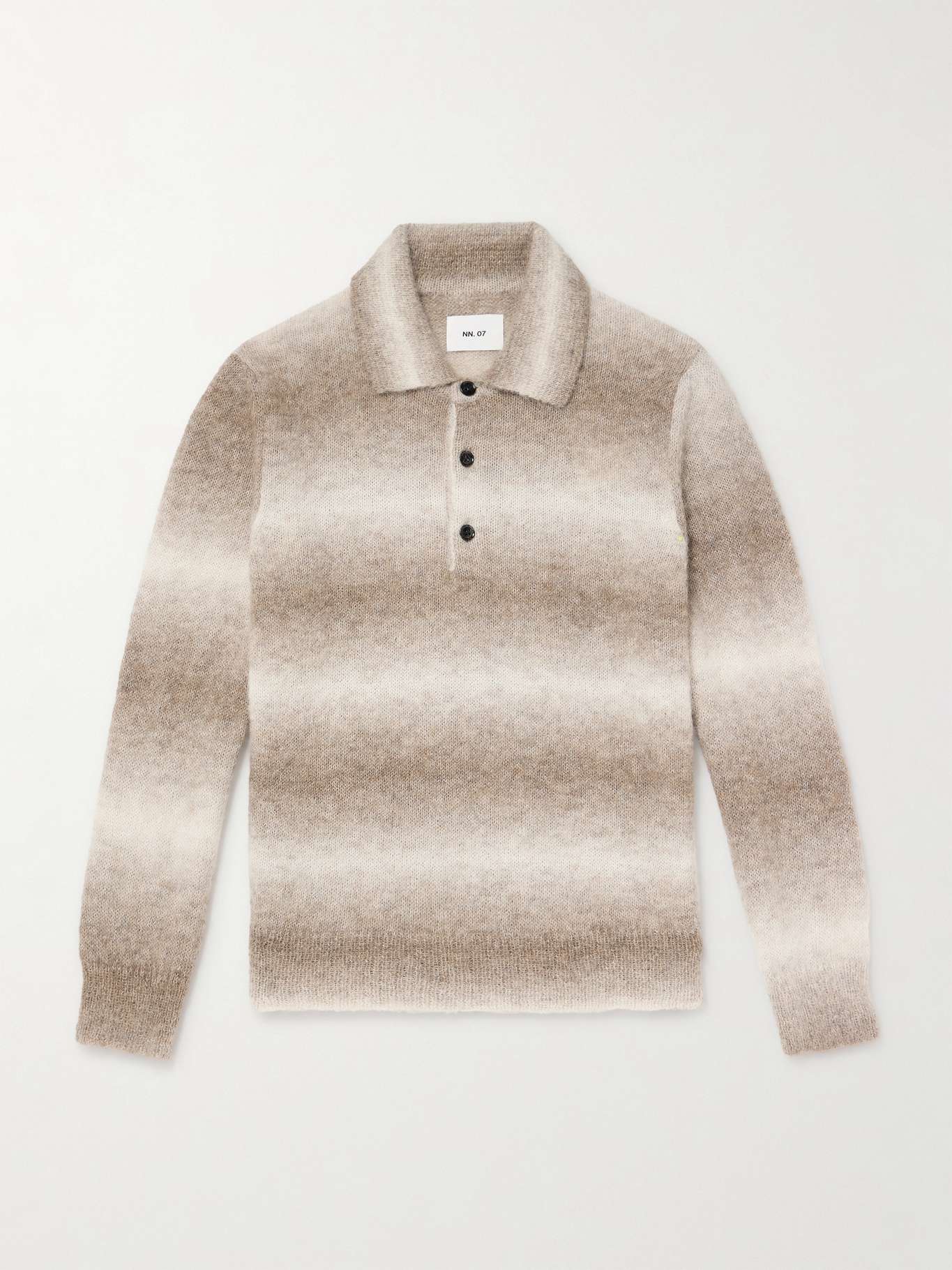 NN07's 'Alfie' polo sweater is made from fuzzy alpaca-blend in gradient stripes. Its half-placket is detailed with contrasting buttons, while the edges are softly ribbed for structure.